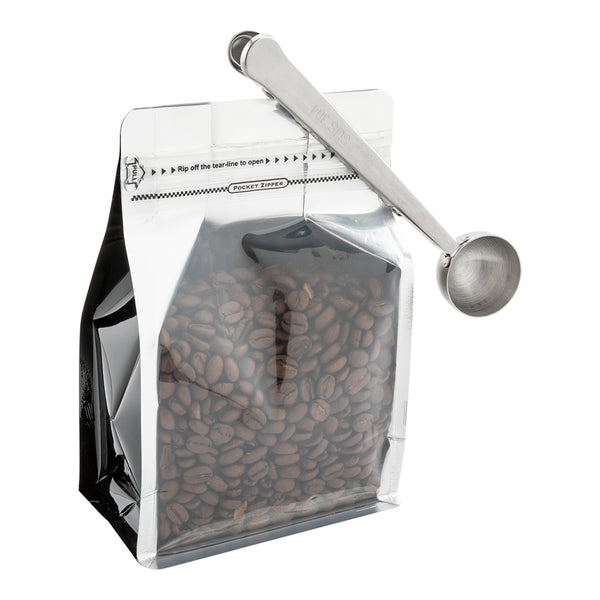 Enhance your coffee service with efficient measurement and storage. The Restpresso 1 Tbsp. Stainless Steel Coffee / Measuring Scoop combines a 1-tablespoon coffee measuring spoon with a resealing clip to deliver precise measurements and maintain the freshness of your coffee. Crafted from corrosion-resistant stainless steel, this versatile tool is designed to withstand the rigors of daily foodservice operations, ensuring your investment lasts. The ergonomic handle offers comfortable handling, while the scoop with a resealing clip attaches directly to bags for convenient storage and easy access. Its dishwasher-safe feature allows for quick, efficient cleaning, making it ideal for busy coffee shops and cafes. The greaseproof surface ensures a clean and neat presentation, while its compact size fits neatly in small spaces, optimizing storage in your establishment. Measuring approximately 6.87 inches in length, this compact scoop fits easily into small spaces. Sold in a 1 count box.