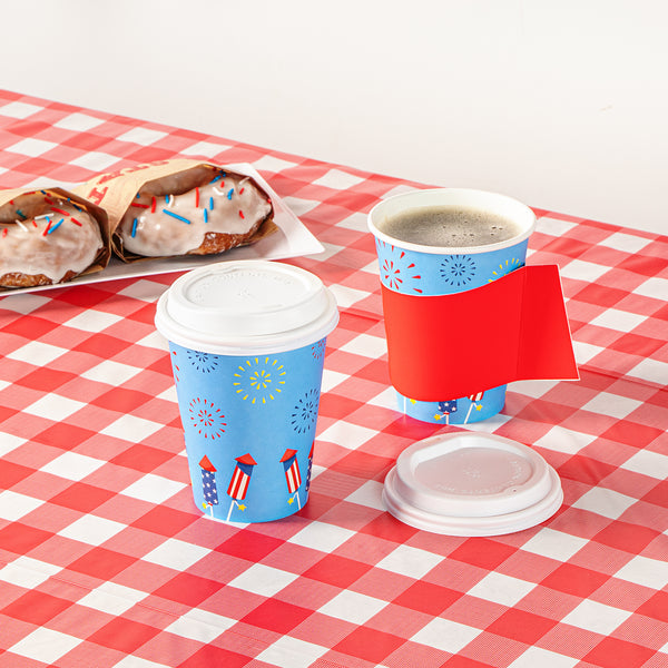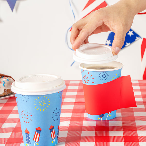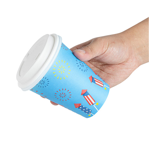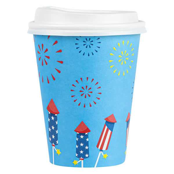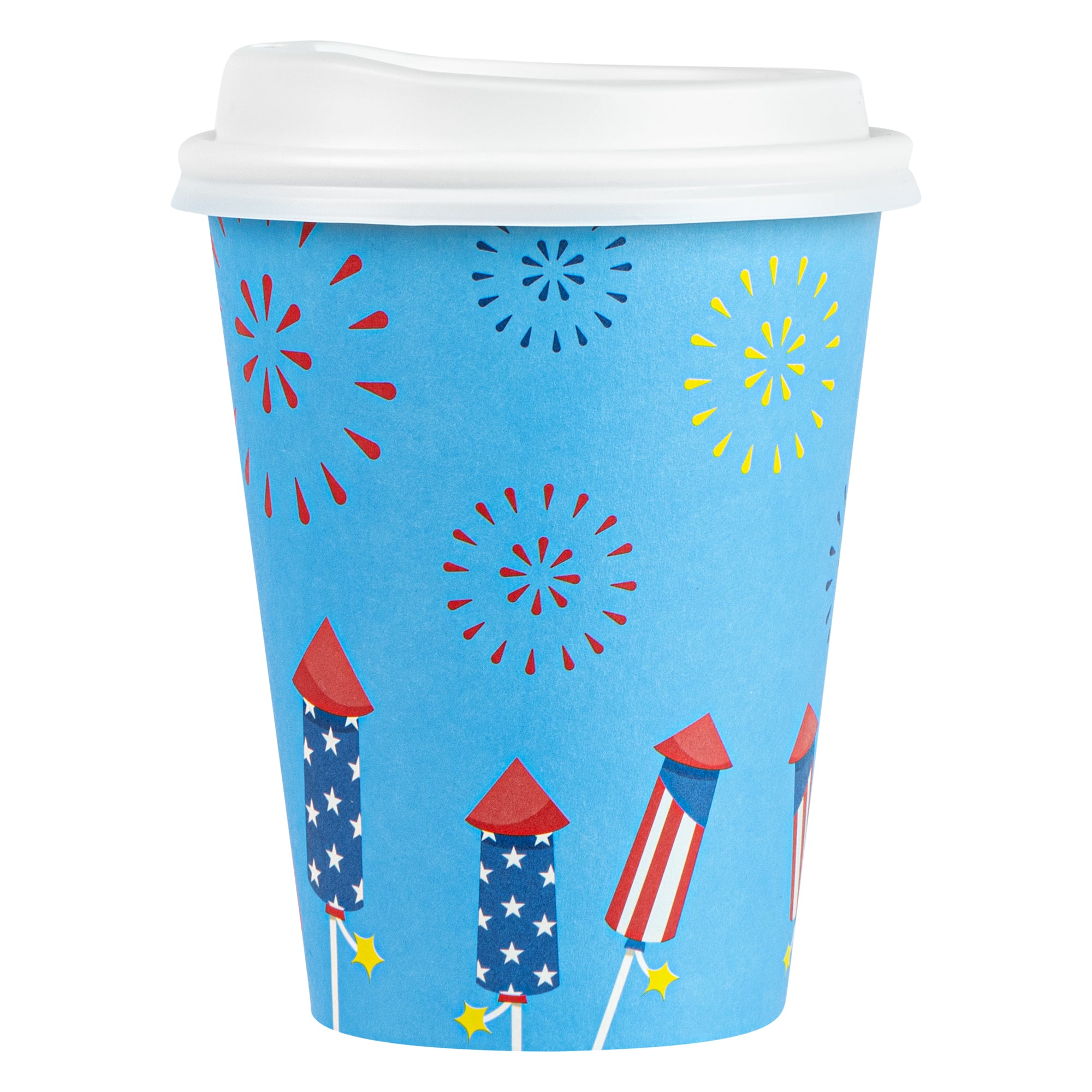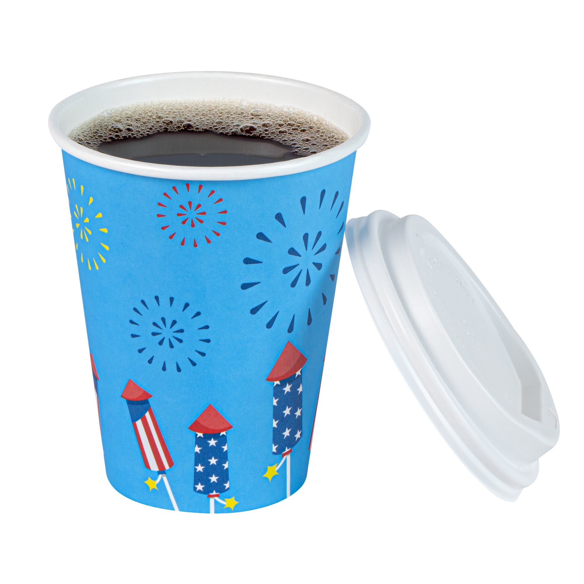 12 OZ 4TH OF JULY PAPER SINGLE WALL COFFEE CUP - WITH LID