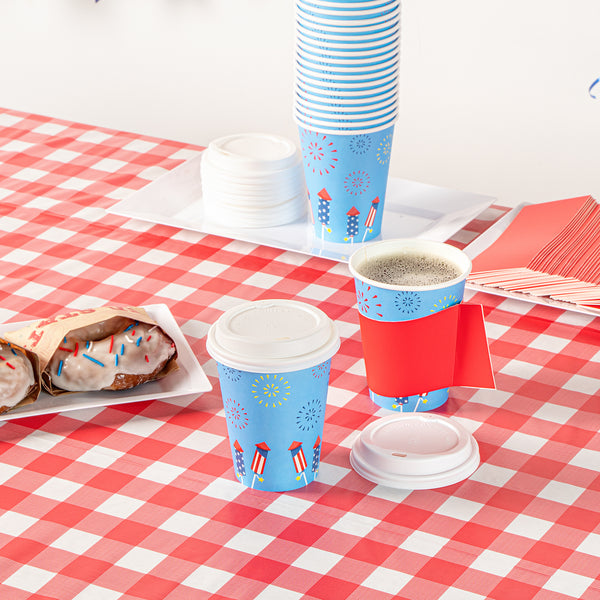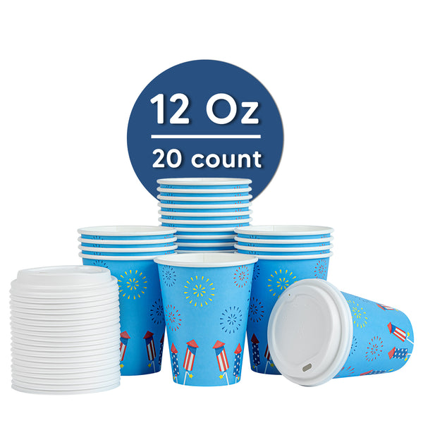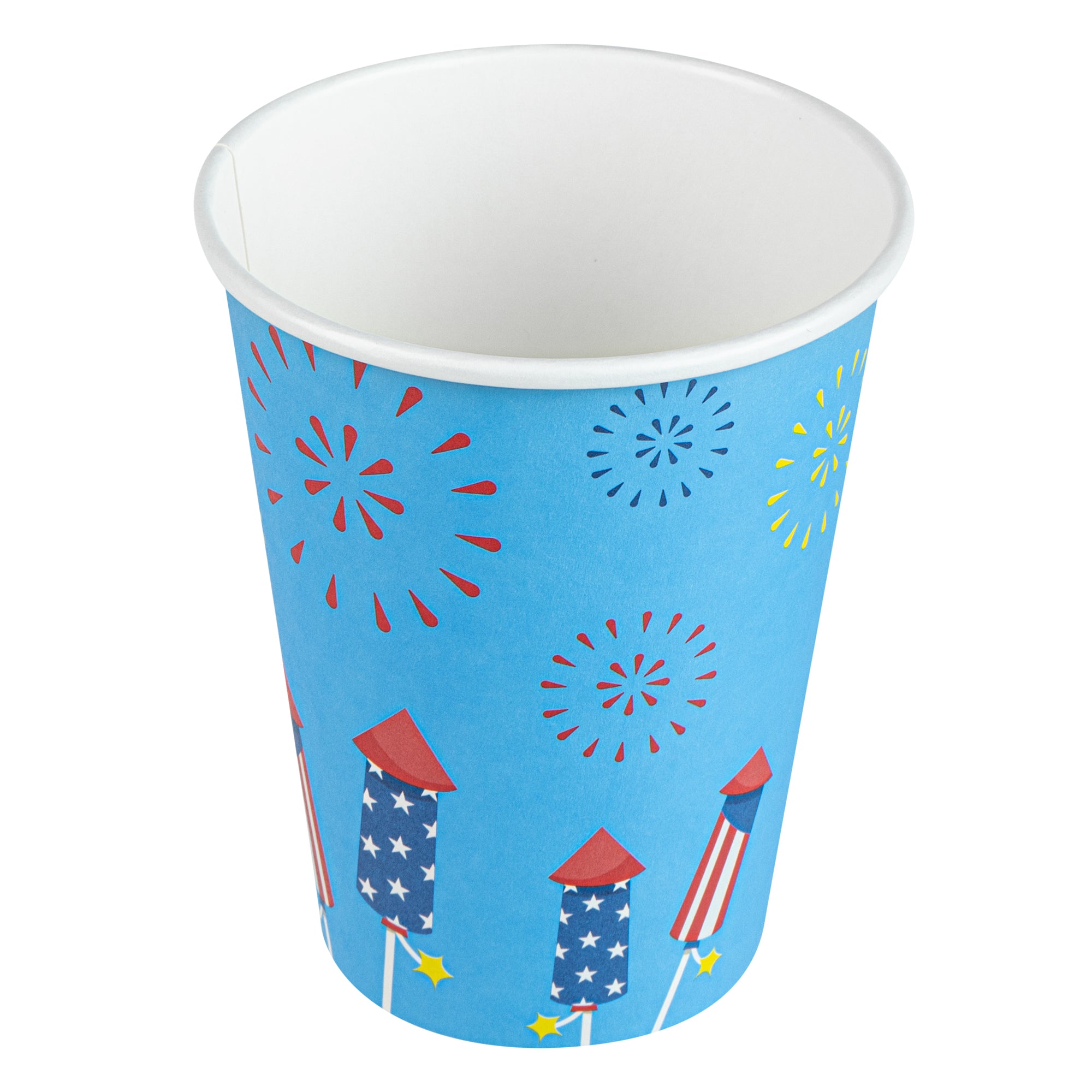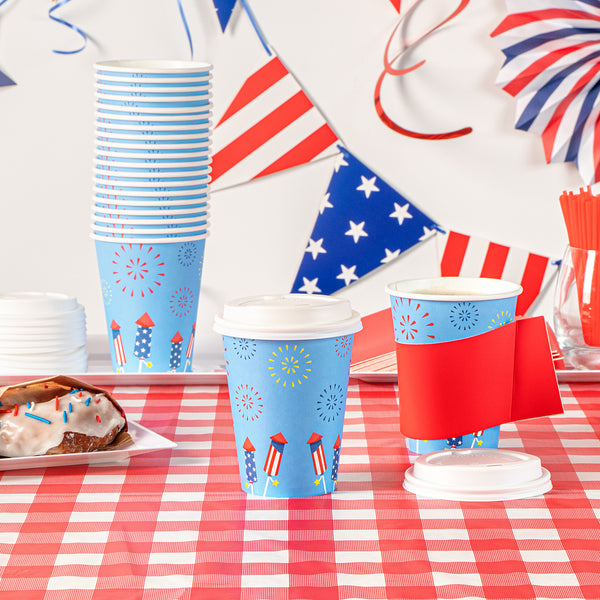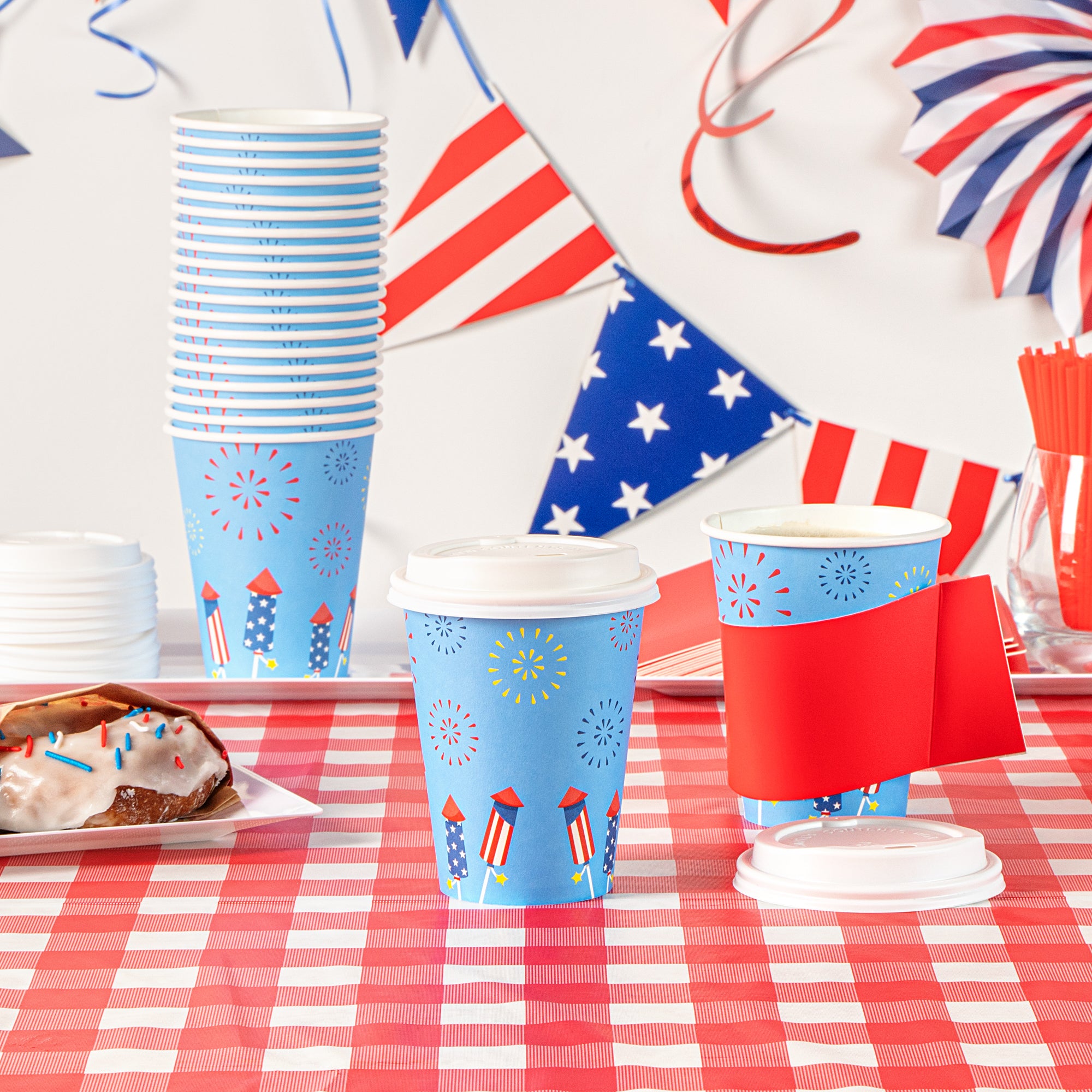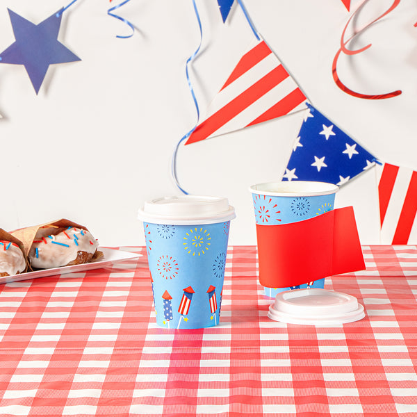 12 OZ 4TH OF JULY PAPER SINGLE WALL COFFEE CUP - WITH LID