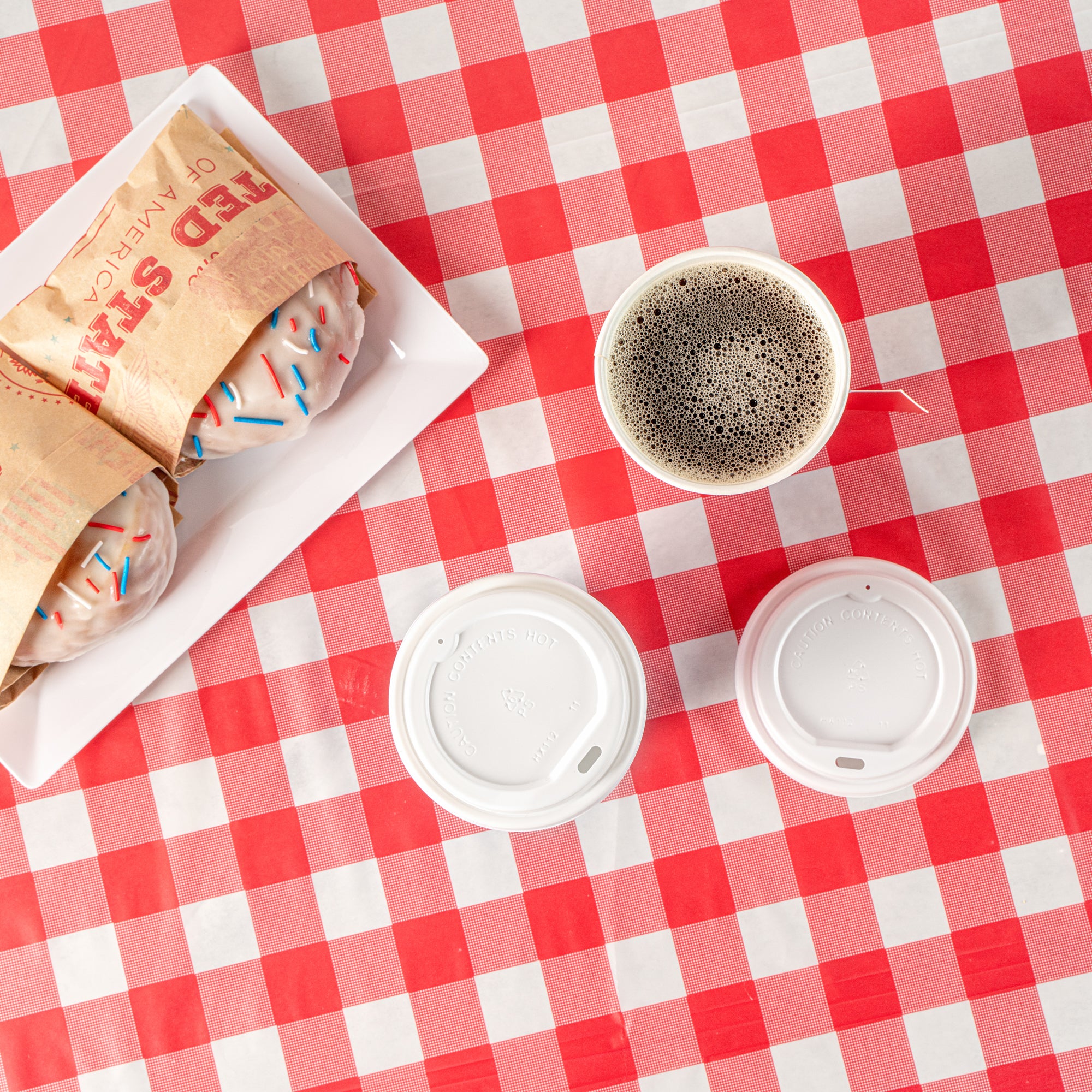 Celebrate in style this holiday with our Restpresso 12-ounce 4th of July Paper Single Wall Coffee Cups. These disposable coffee cups come equipped with white plastic lids that form a secure seal and prevent spills, ideal for an on-the-go sipping experience. The 4th of July-inspired design on these paper coffee cups elevates your beverage presentation and infuses your celebration with patriotic spirit, making each sip a festive celebration. With a greaseproof PE lining, these paper tea cups ensures a mess-free drinking experience. Featuring a rolled rim, these disposable cups for coffee provide a smooth flow of your favorite hot beverages. These 12-ounce coffee cups are made from premium paper and are suitable for holding hot and cold beverages. The leak-resistant seams on these beverage cups minimize the risk of potential leaks, making them a reliable option for any cafe or restaurant. Adorned with a "recycle me" message on the bottom, these hot drink cups encourage guests to dispose of them in an eco-friendly way. To facilitate an easy cleanup, these hot cups with lids are disposable and can be discarded after use. These coffee cups with lids measure 3.5 inches in diameter by 4.68 inches in height and have a capacity of 12 ounces. Sold in a 20 count box.