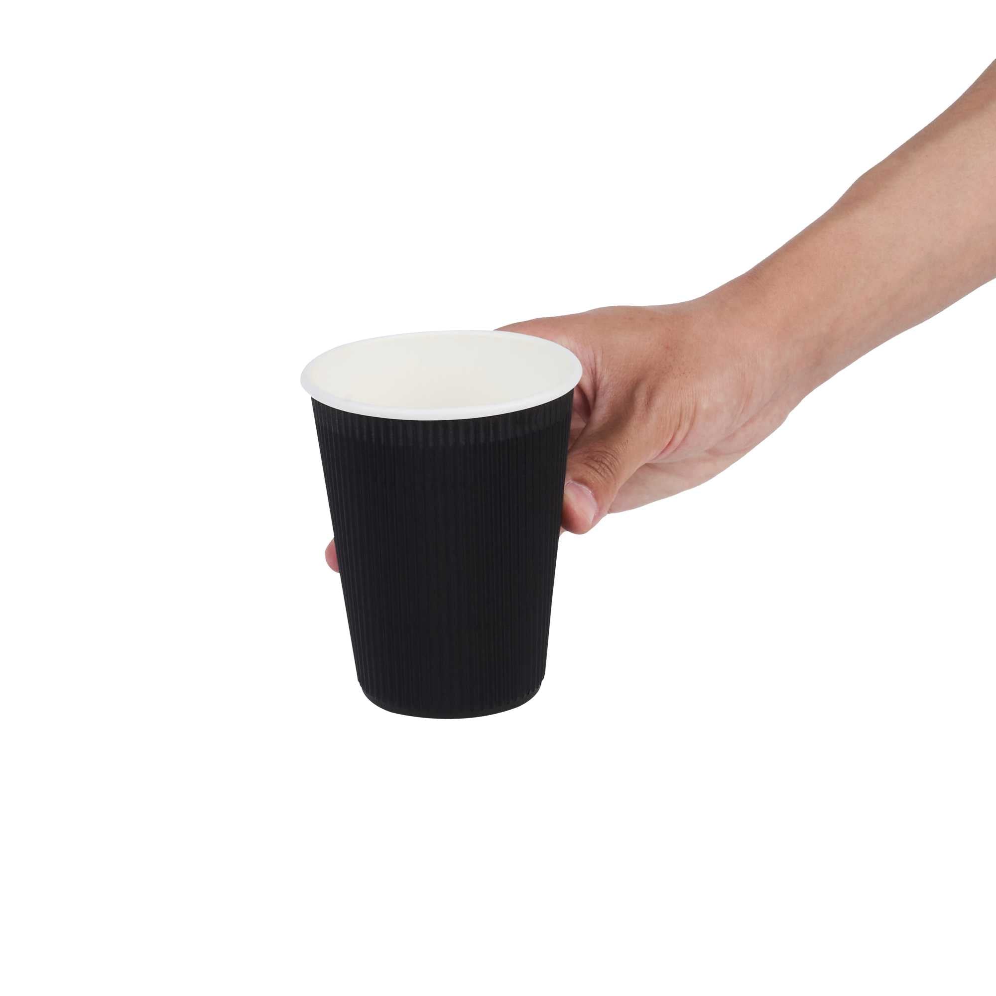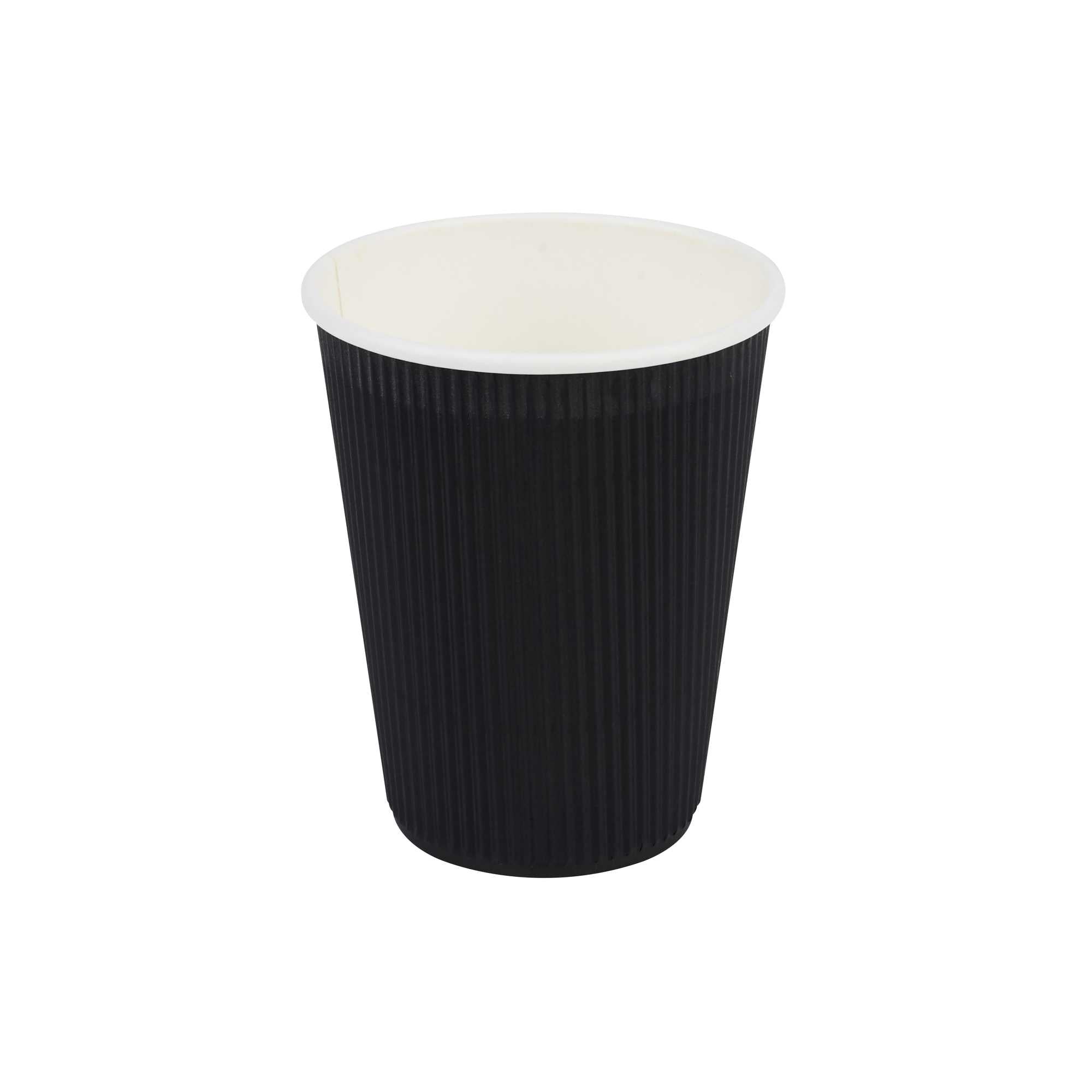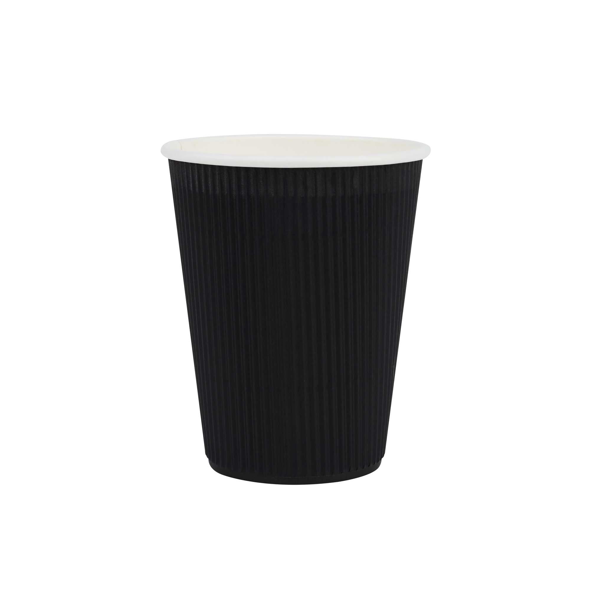 12 OZ BLACK PAPER COFFEE CUP - RIPPLE WALL
