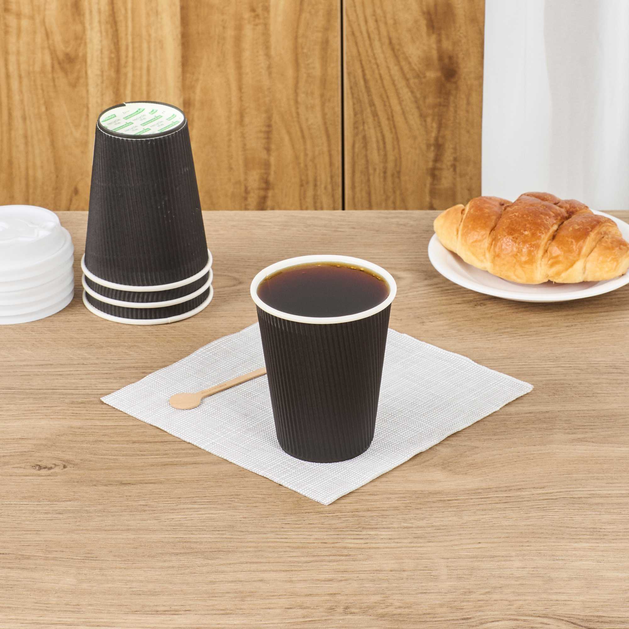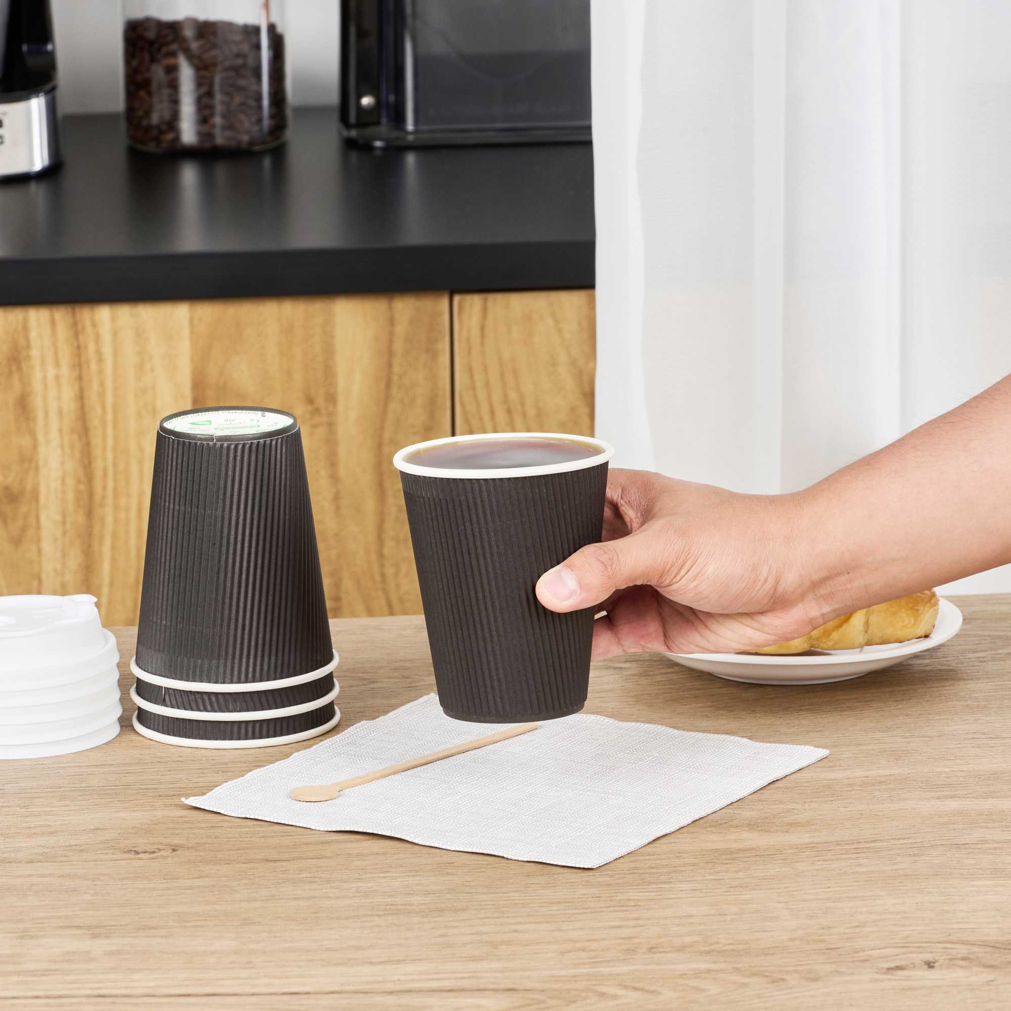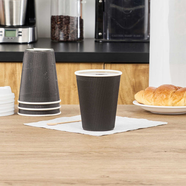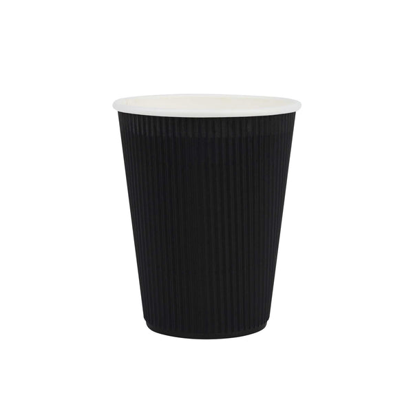 12 OZ BLACK PAPER COFFEE CUP - RIPPLE WALL