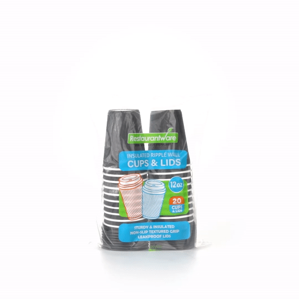 Elevate your coffee service with stylish and functional packaging. The Restpresso 12 oz Black Paper Ripple Wall Coffee Cups With Lids offer a tight-fitting seal that keeps coffee hotter for longer, making them an ideal choice for busy coffee shops needing disposable coffee cups with lids. Crafted from black paper with an innovative ripple wall design, these black ripple wall coffee cups provide a sturdy non-slip grip, reducing the risk of spills and enhancing customer satisfaction. The built-in insulation maintains the beverage’s temperature while keeping hands cool, perfect for cafes serving lattes and americanos in insulated coffee cups. Made from recyclable materials, these cups support eco-friendly business practices, appealing to environmentally conscious consumers. Each cup measures 3.6 inches in diameter by 5.1 inches in height, ideal for a variety of hot beverages. Sold in a 200 count box.