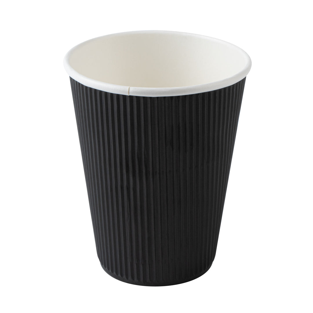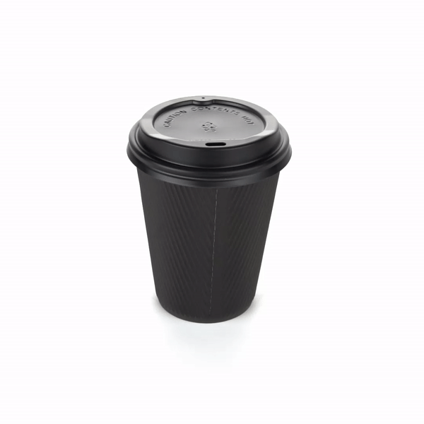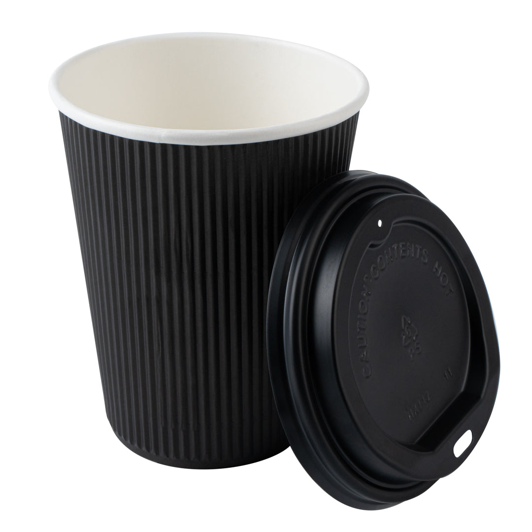 12 OZ BLACK PAPER RIPPLE WALL COFFEE CUP - WITH BLACK LID