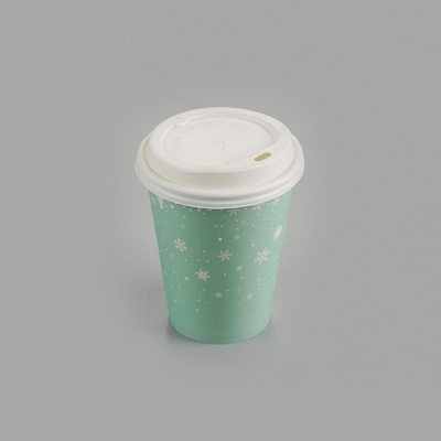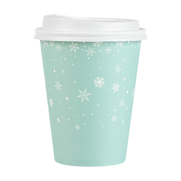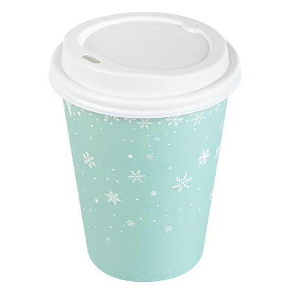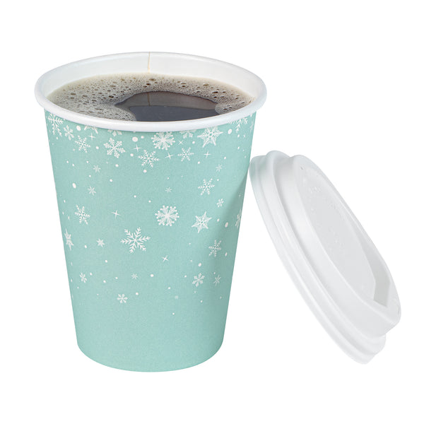 12 OZ BLUE CHRISTMAS SNOWFLAKES SINGLE WALL COFFEE CUP - WITH LID