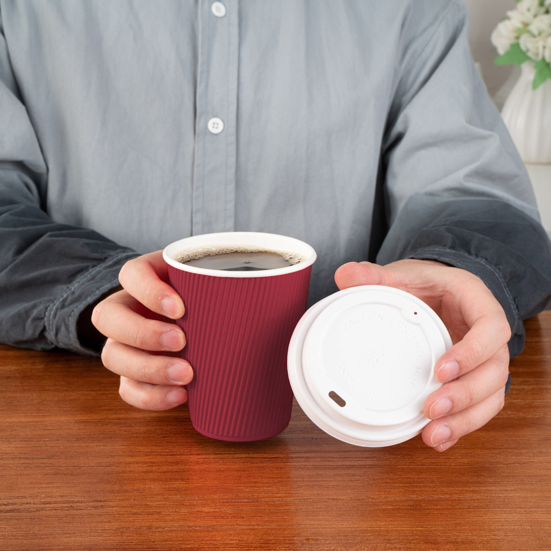 12 OZ CRIMSON PAPER RIPPLE WALL COFFEE CUP - WITH WHITE LID