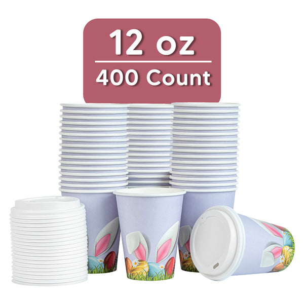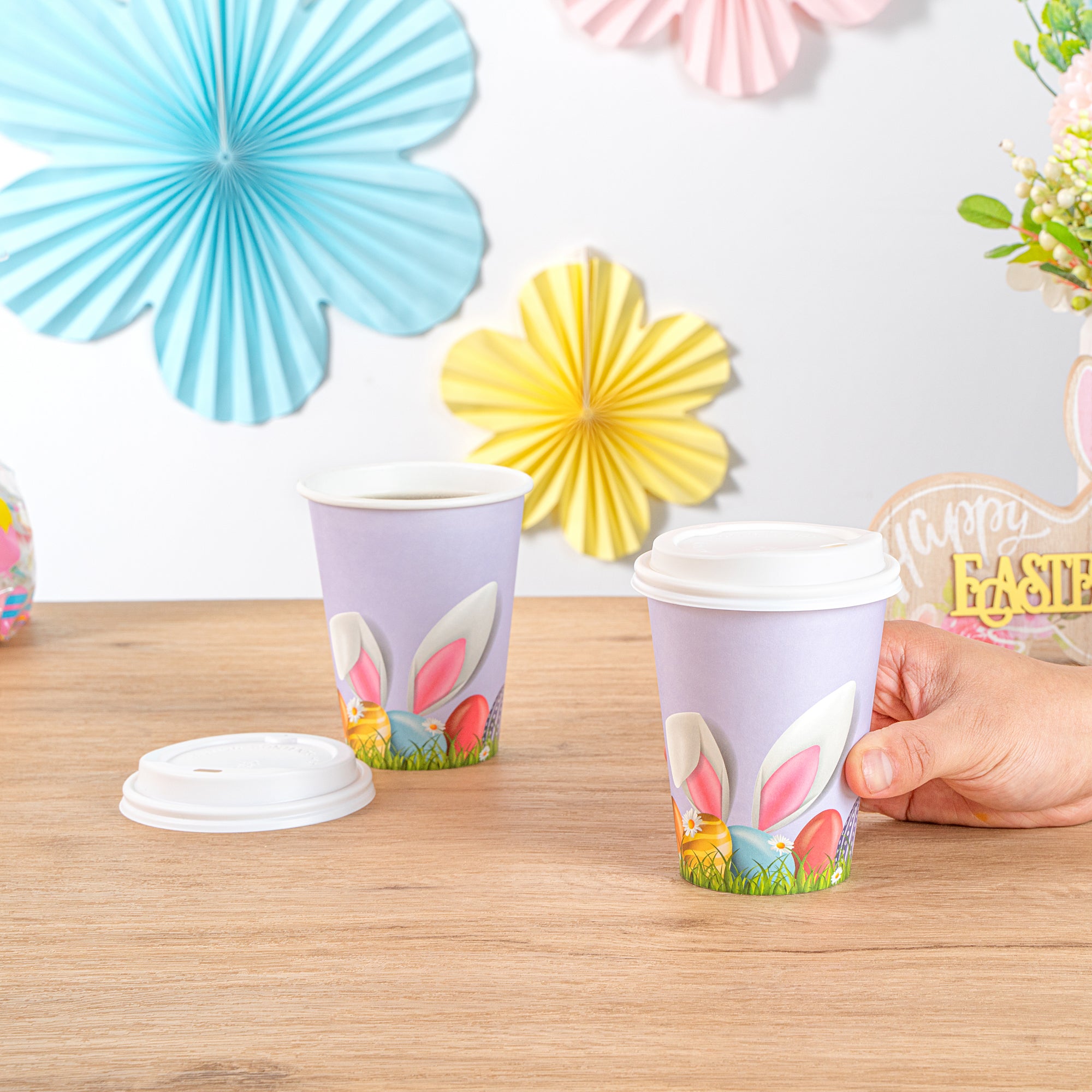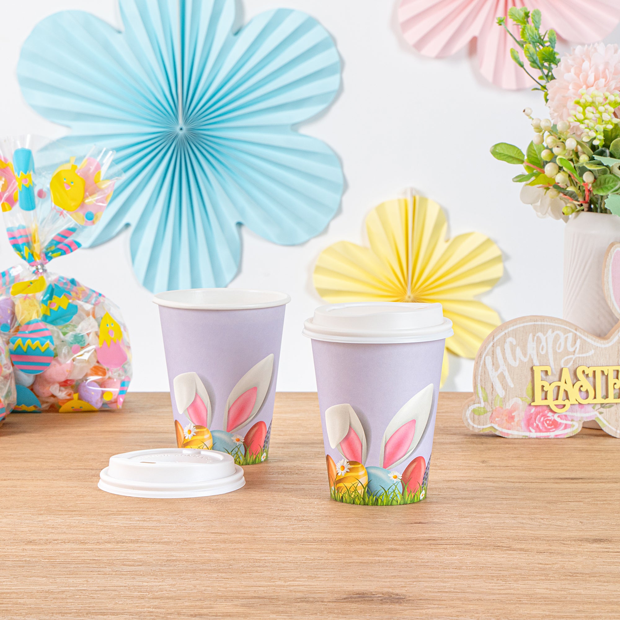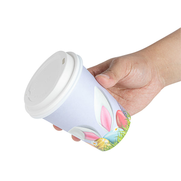 12 OZ EASTER PAPER SINGLE WALL COFFEE CUP - WITH LID