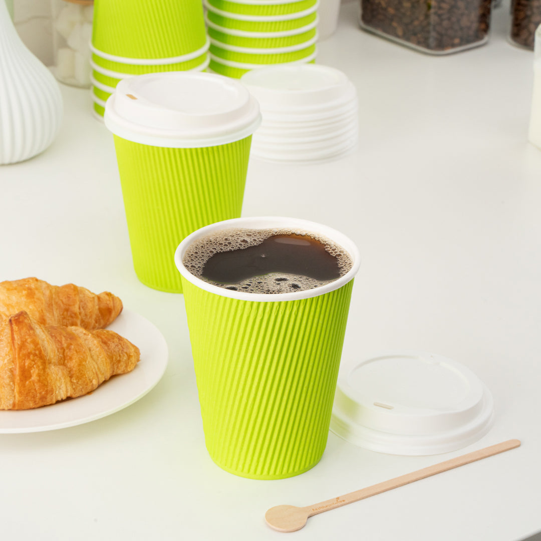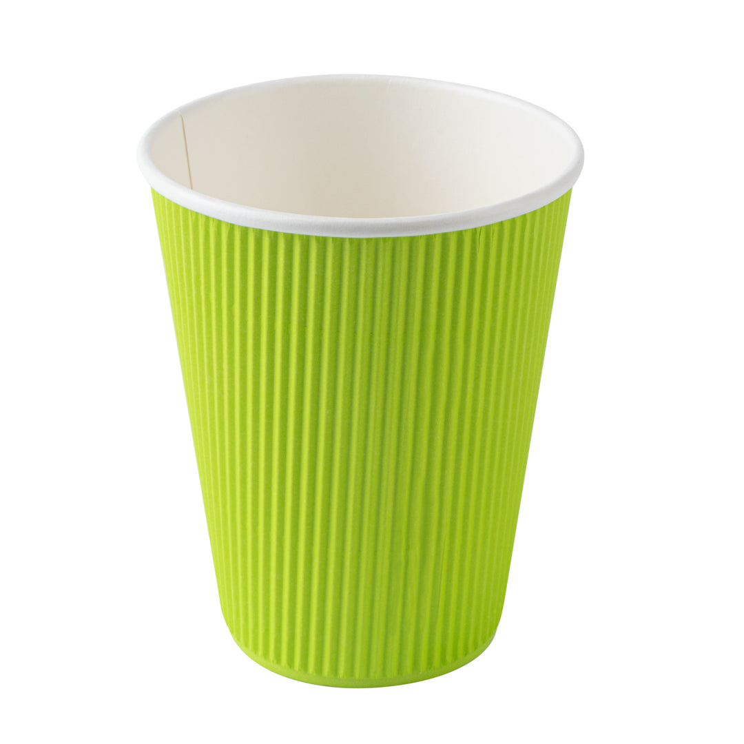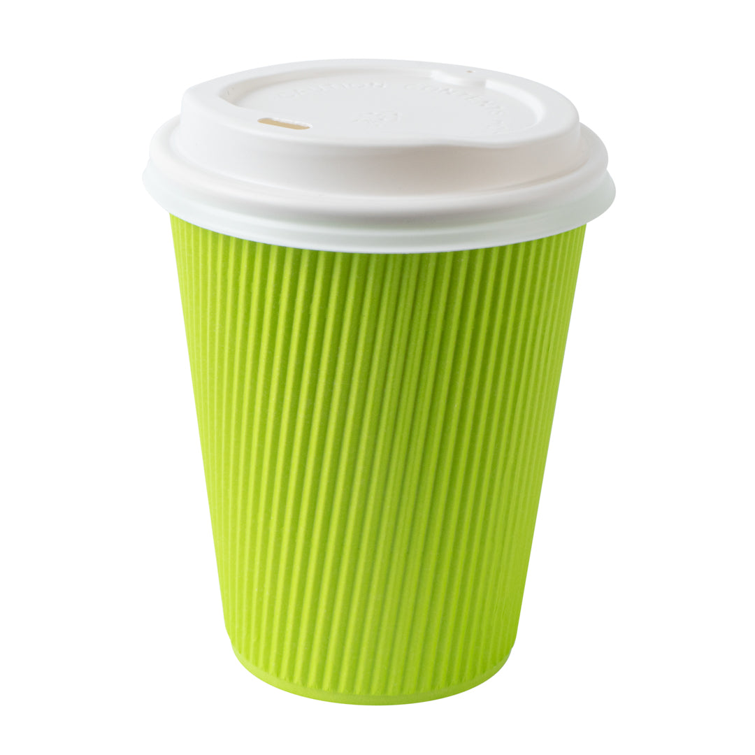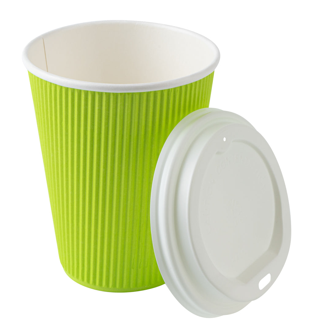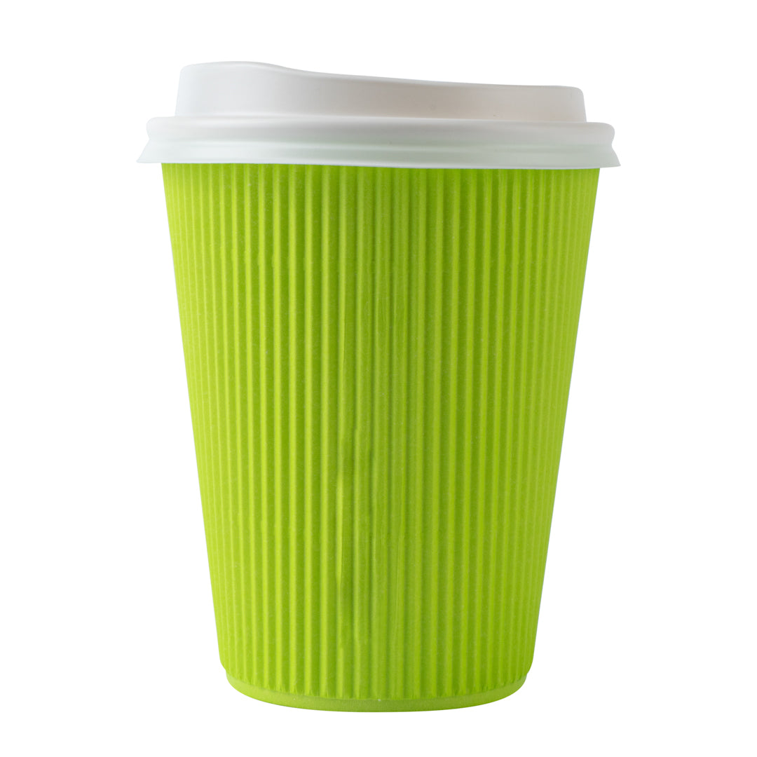 12 OZ ECO GREEN PAPER RIPPLE WALL COFFEE CUP - WITH WHITE LID