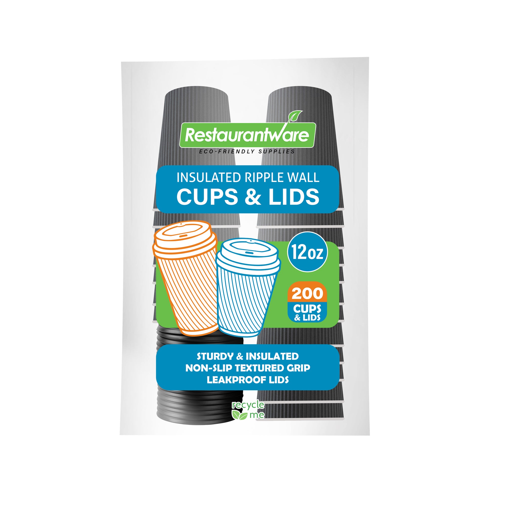 Ensure safe handling with ripple wall insulation. The Restpresso 12 oz Gray Paper Ripple Wall Coffee Cups offer a ripple wall design that provides excellent heat insulation, eliminating the need for sleeves and ensuring a comfortable grip for your customers. These coffee cups with lids come with black plastic lids that offer a secure fit, preventing spills and maintaining beverage integrity during transport. The recyclable construction of these ripple wall coffee cups supports eco-friendly foodservice operations, making them ideal for establishments committed to sustainability. With dimensions of 3.6 inches x 3.6 inches x 5.1 inches, these cups are crafted from durable paper, ensuring they remain sturdy and reliable for hot beverages. Perfect for coffee shops and catering events, these gray cups add a sleek, modern touch to any presentation. Enhance your beverage service with these versatile disposable coffee cups. Sold in a 200 count box.