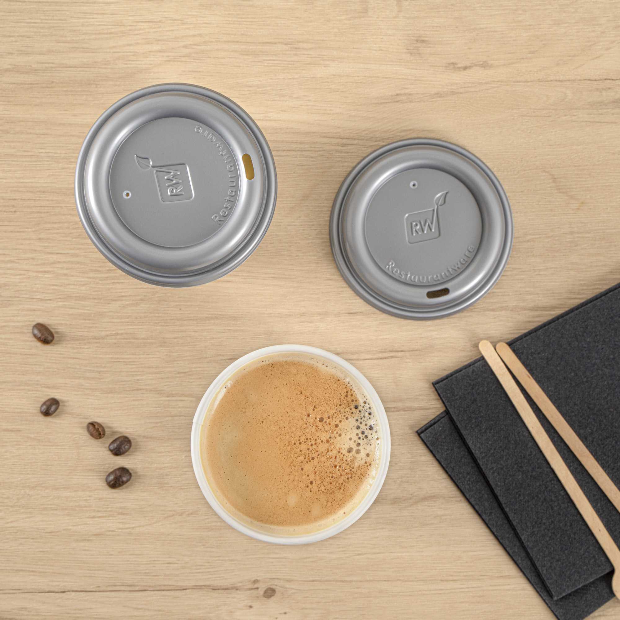 - Included gray lid to prevent spills during busy service