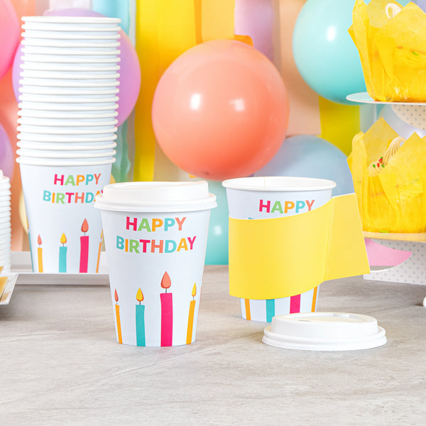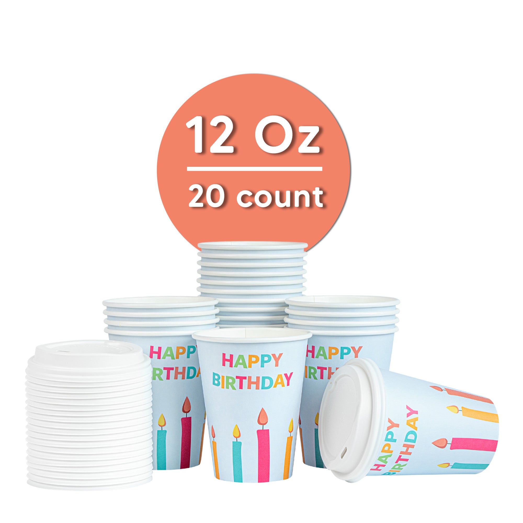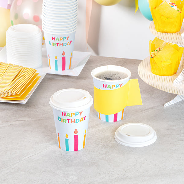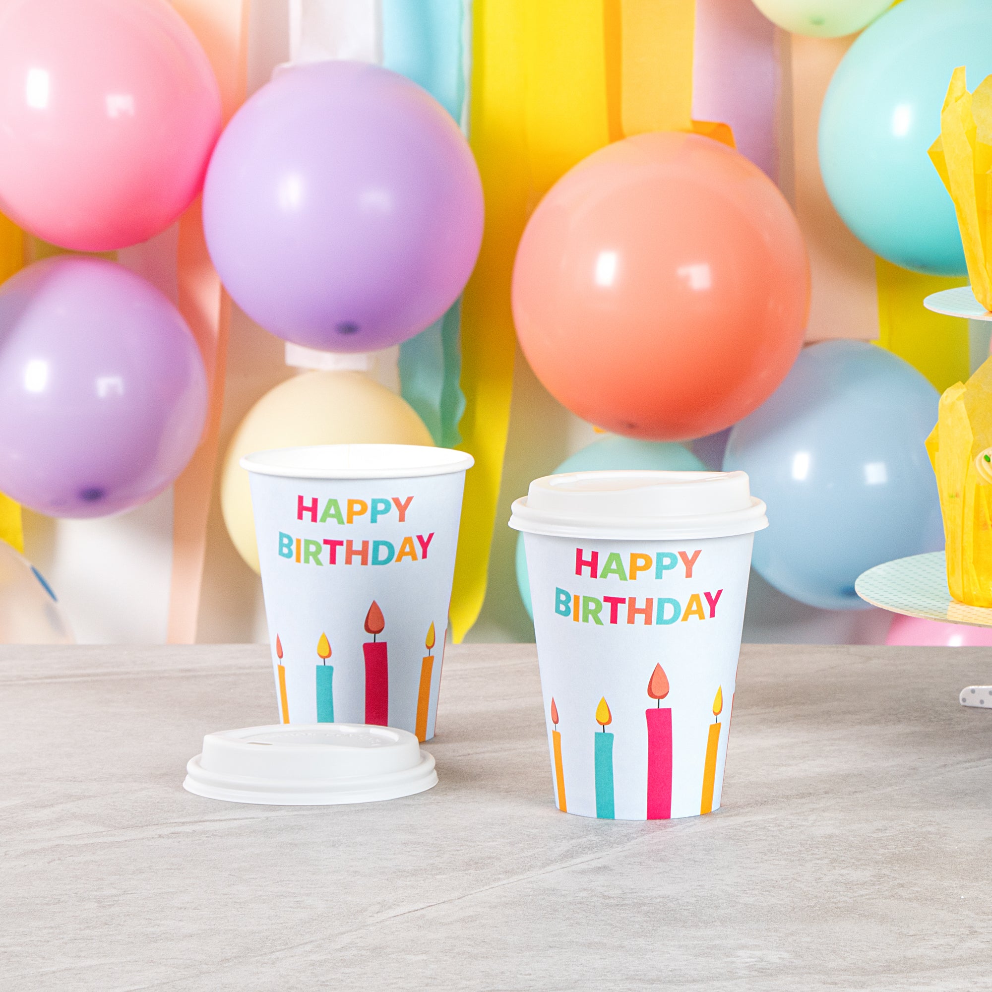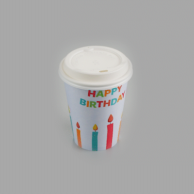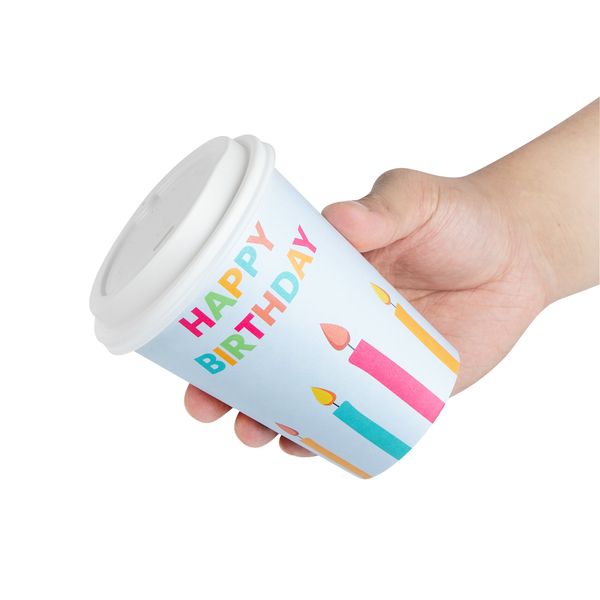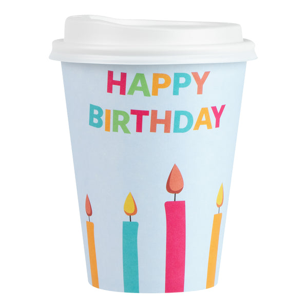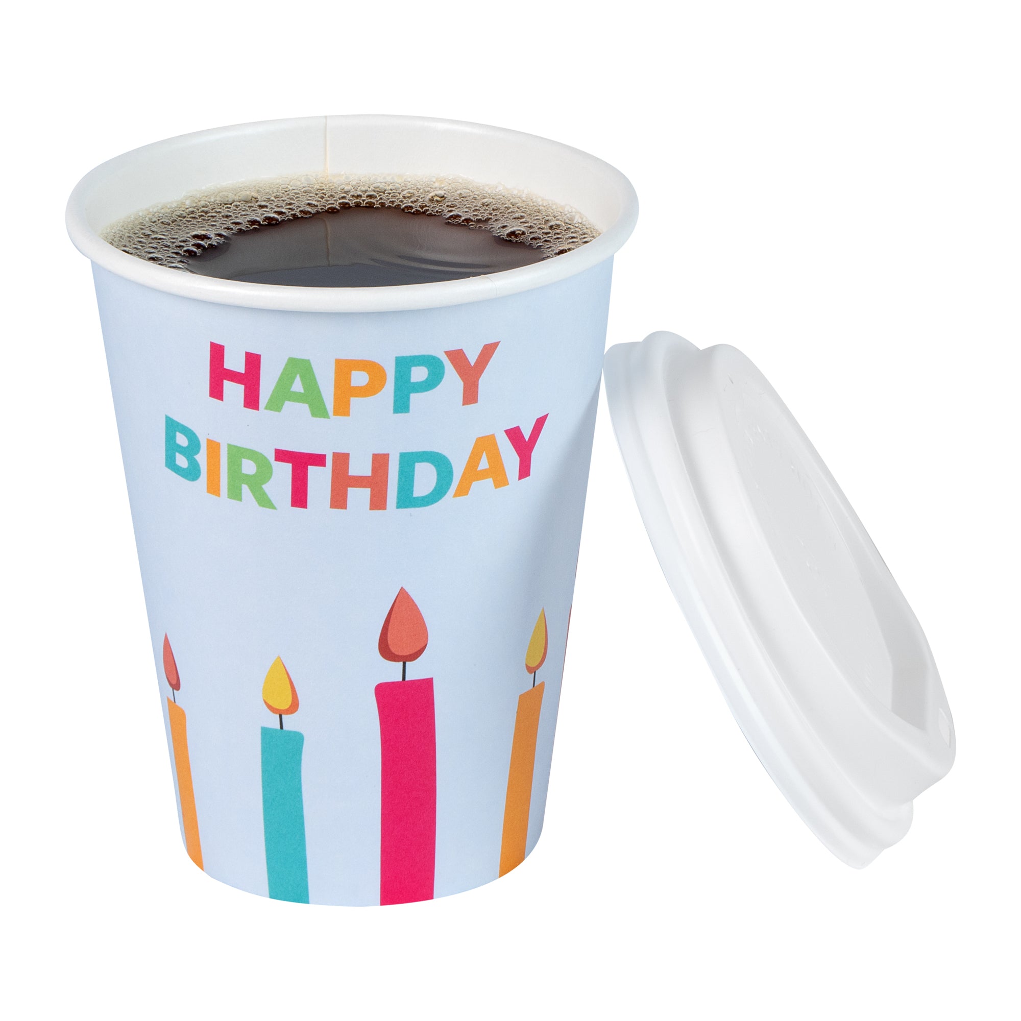 12 OZ HAPPY BIRTHDAY PAPER SINGLE WALL COFFEE CUP - WITH LID