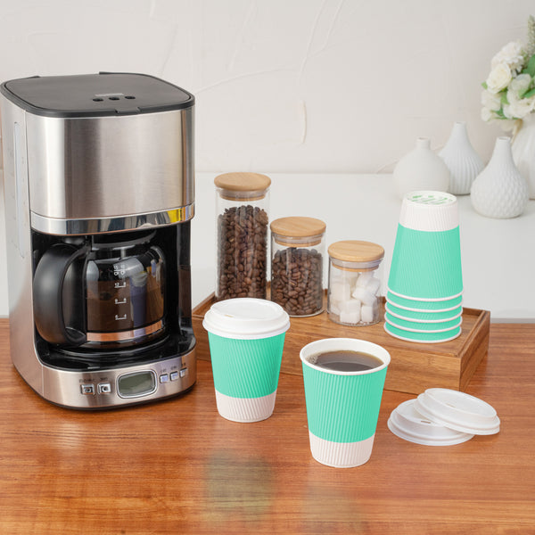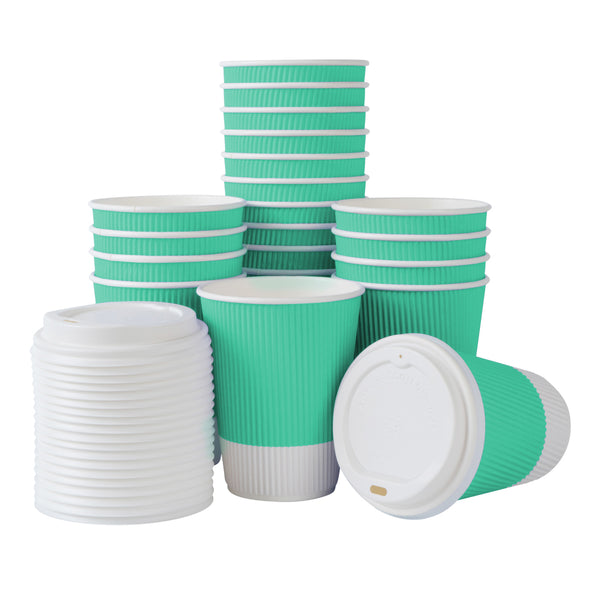 12 OZ LIGHT GREEN PAPER RIPPLE WALL COFFEE CUP - WITH WHITE LID