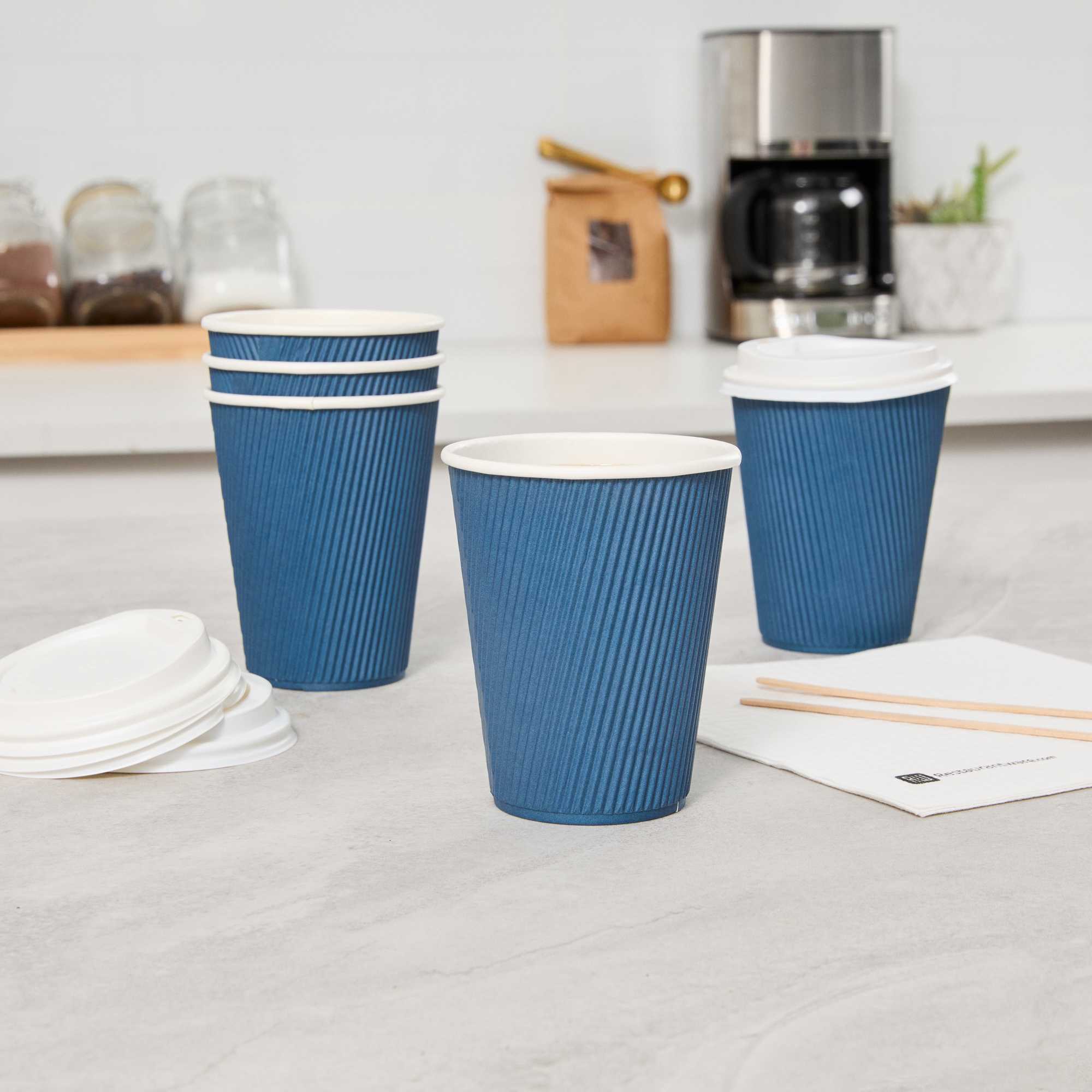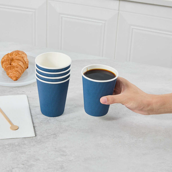 12 OZ MIDNIGHT BLUE PAPER COFFEE CUP - RIPPLE WALL