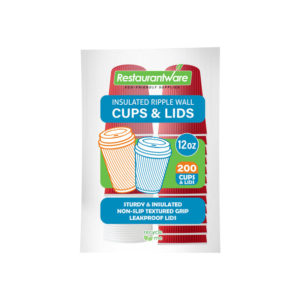 Enhance your beverage service with stylishly insulated cups. Restpresso 12 oz Red Paper Ripple Wall Coffee Cups with Lids are crafted from paper and feature a red ripple wall design that provides excellent insulation, allowing baristas to safely serve hot drinks without discomfort. These disposable coffee cups include secure-fitting white lids, preventing spills and making them ideal for on-the-go coffee lovers. The 90-millimeter diameter of these coffee cups with lids ensures compatibility with standard lids, offering versatility in various foodservice settings. Their greaseproof design protects against leaks, making them suitable for serving oily foods alongside your beverages. With dimensions of 3.6 inches in width and 5.1 inches in height, these cups are perfect for coffee shops, catering services, and corporate events seeking reliable, eco-friendly options. Sold in a 200 count box.