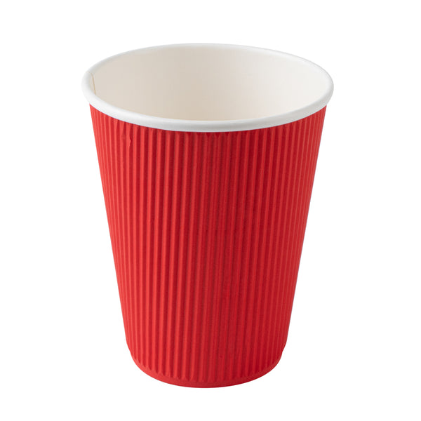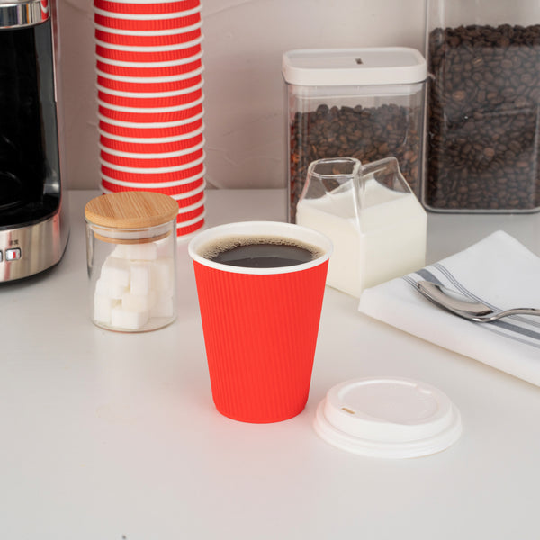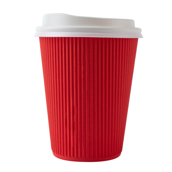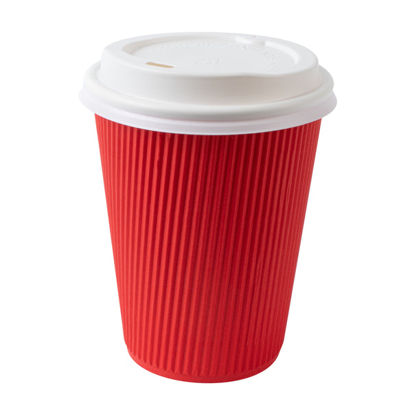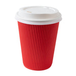 12 OZ RED PAPER RIPPLE WALL COFFEE CUP - WITH WHITE LID