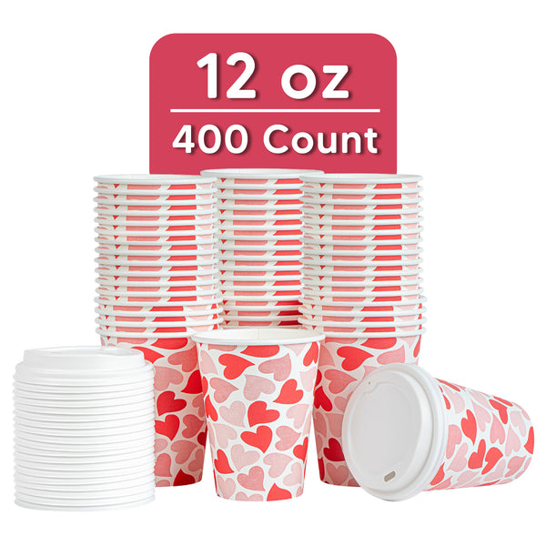 12 OZ VALENTINE'S DAY PAPER SINGLE WALL COFFEE CUP - WITH LID