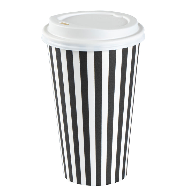 16 OZ BLACK AND WHITE PAPER SINGLE WALL COFFEE CUP - WITH LID