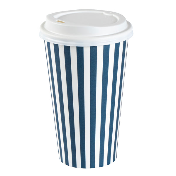 16 OZ BLUE AND WHITE PAPER SINGLE WALL COFFEE CUP - WITH LID