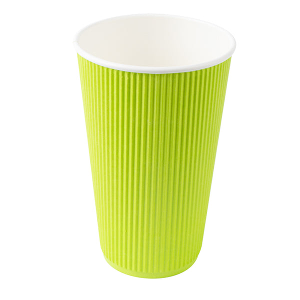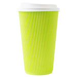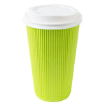 16 OZ ECO GREEN PAPER RIPPLE WALL COFFEE CUP - WITH WHITE LID