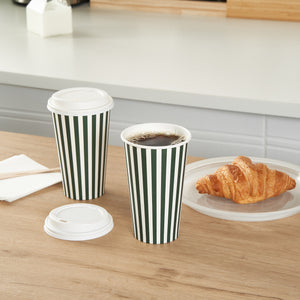 16 OZ FOREST GREEN AND WHITE PAPER SINGLE WALL COFFEE CUP - WITH LID