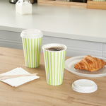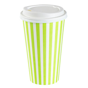16 OZ GREEN AND WHITE PAPER SINGLE WALL COFFEE CUP - WITH LID
