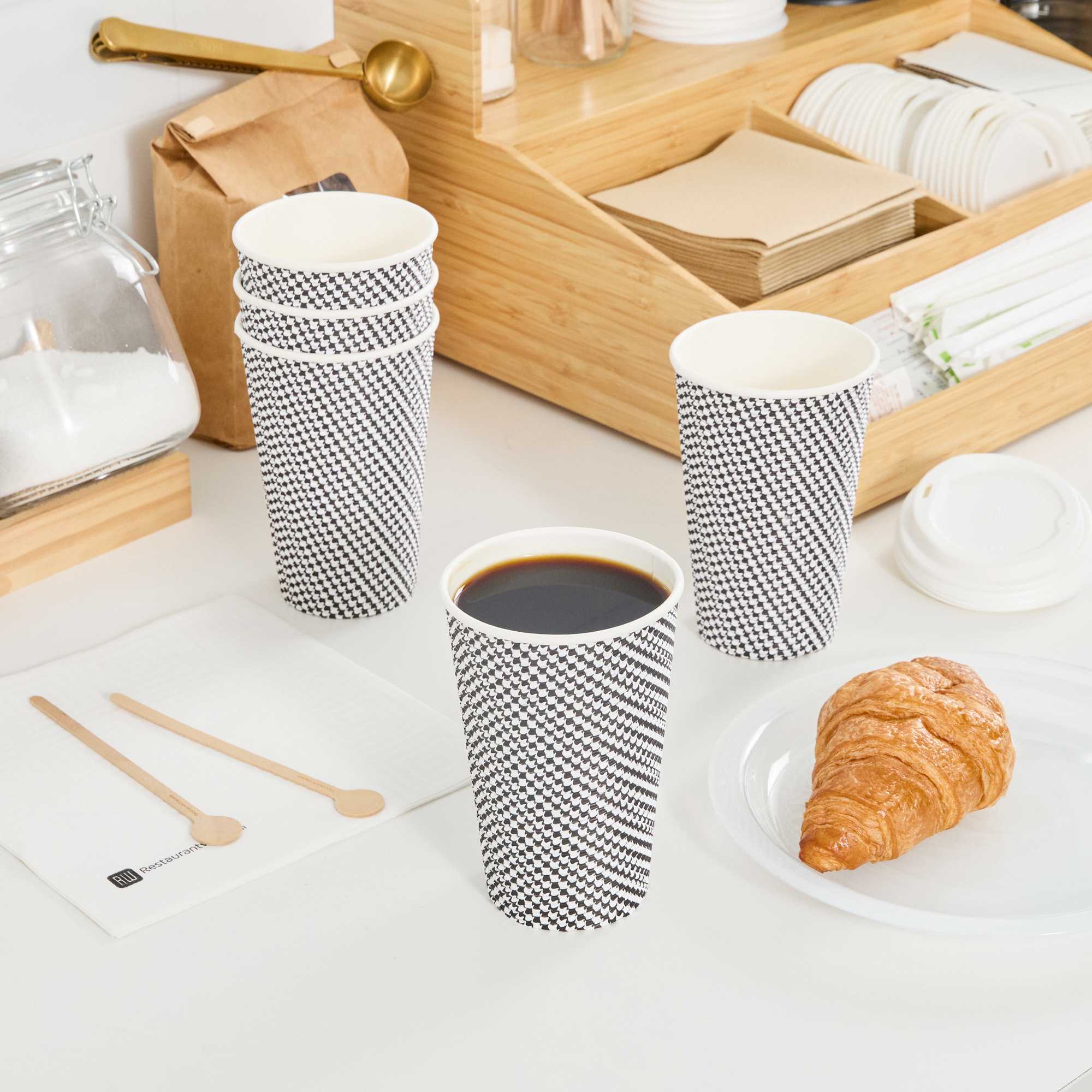 16 OZ HOUNDSTOOTH PAPER COFFEE CUP - SPIRAL WALL