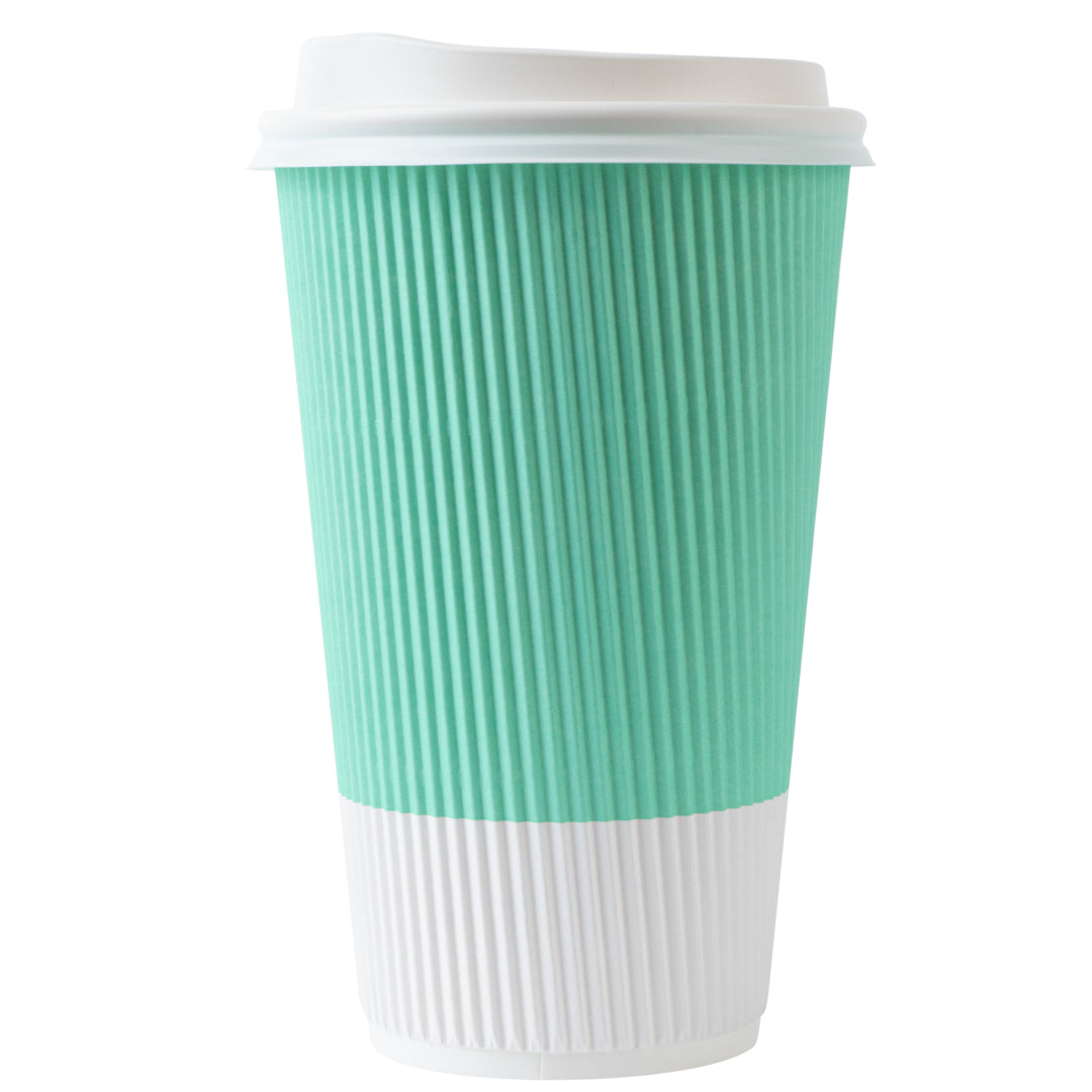 16 OZ LIGHT GREEN PAPER RIPPLE WALL COFFEE CUP - WITH WHITE LID