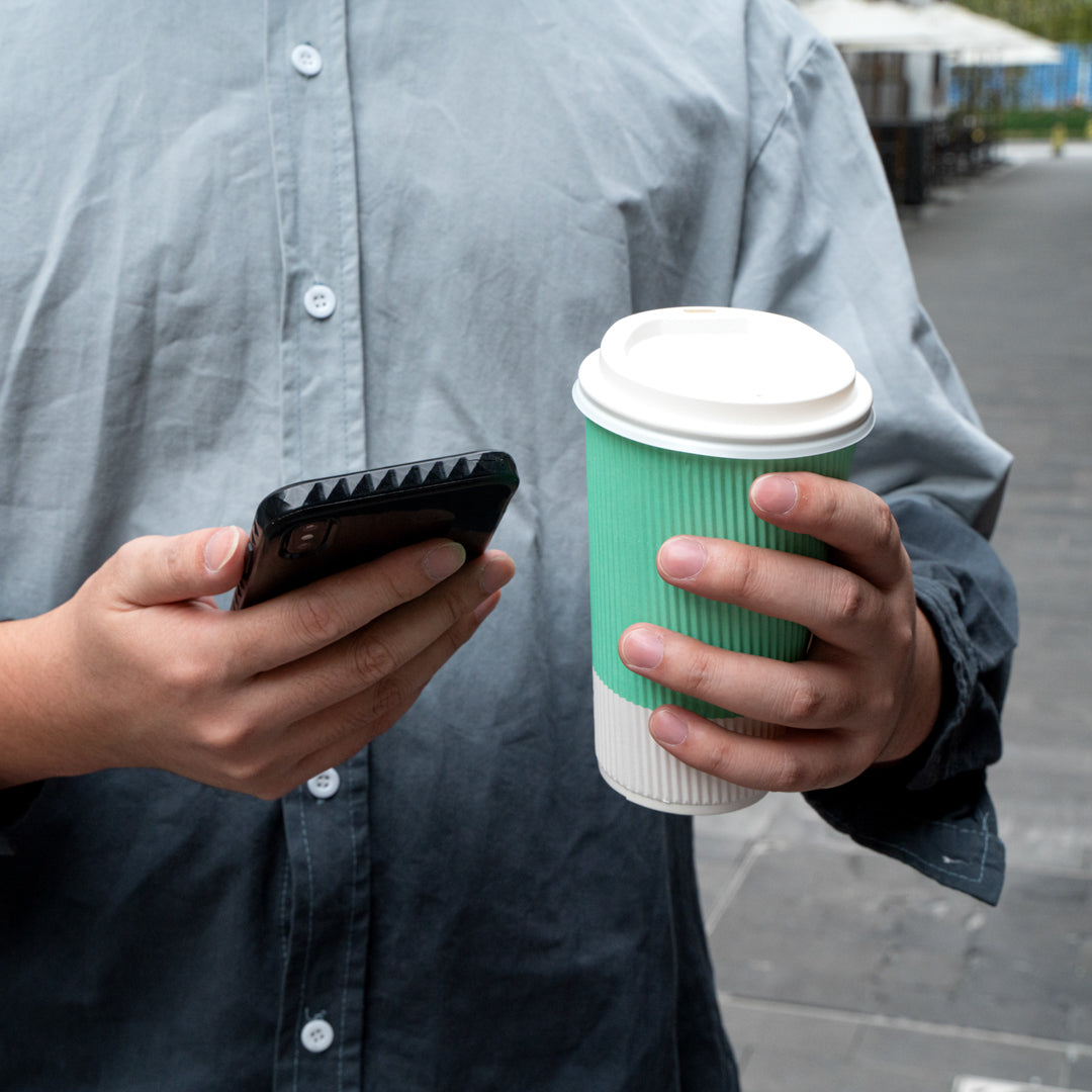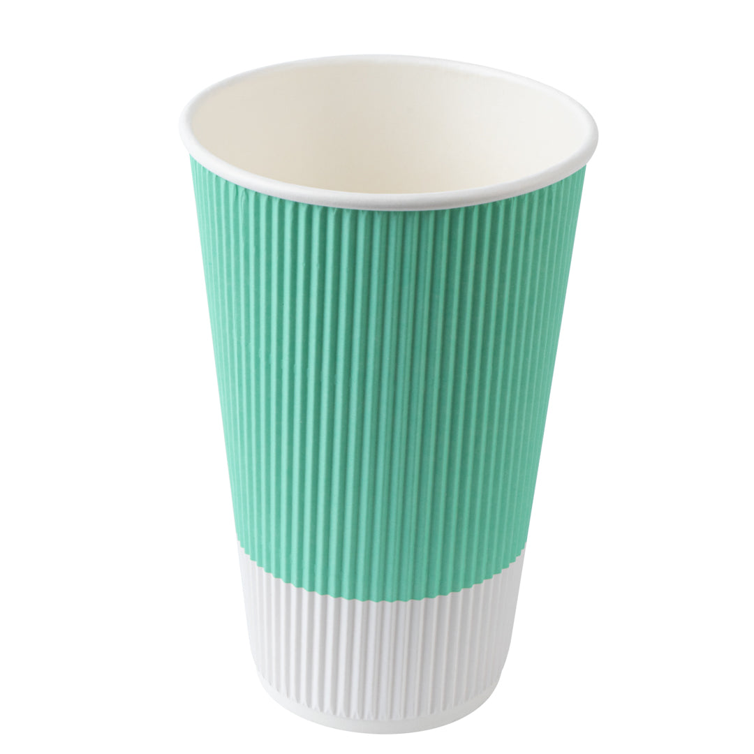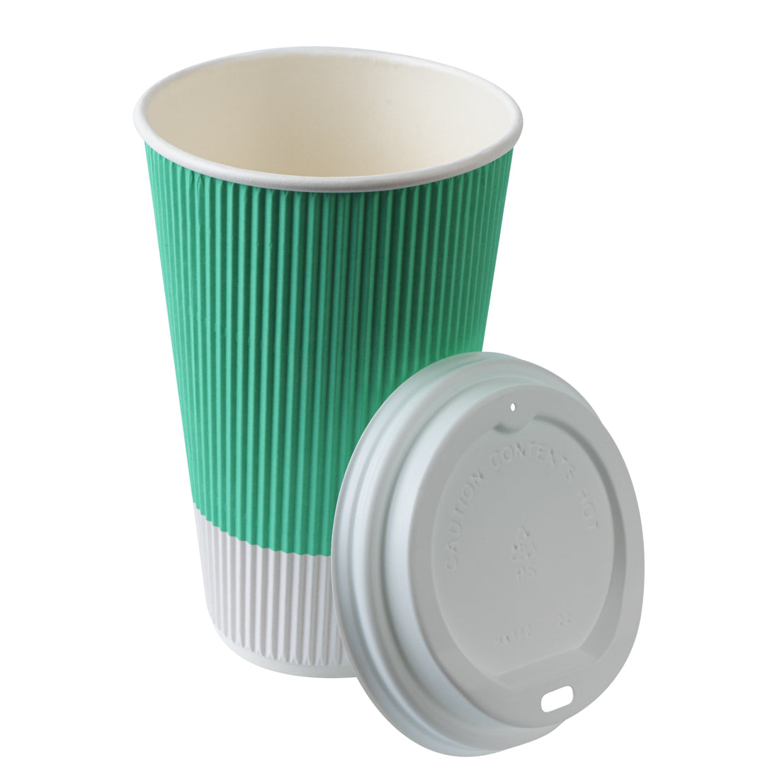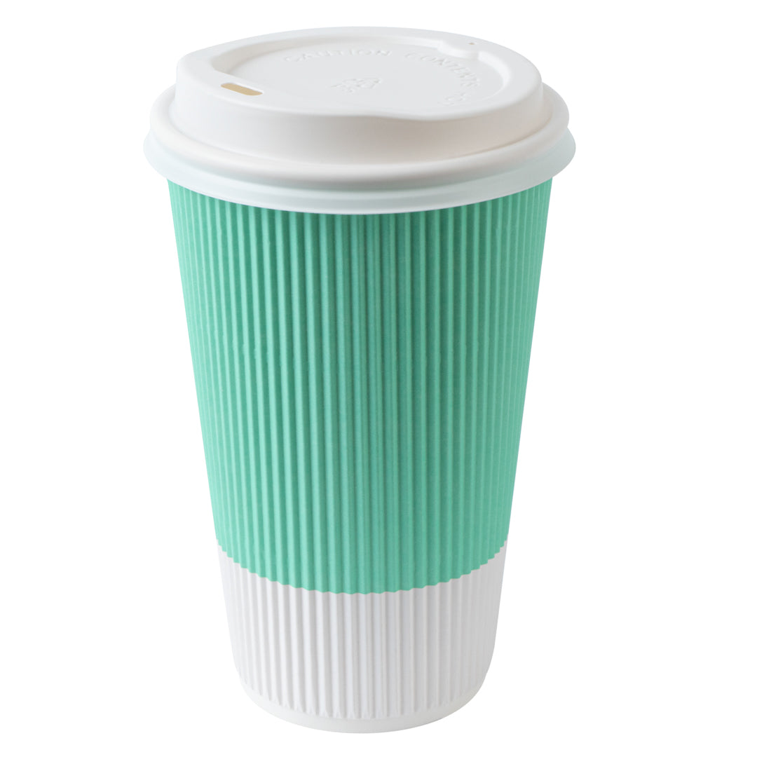 16 OZ LIGHT GREEN PAPER RIPPLE WALL COFFEE CUP - WITH WHITE LID