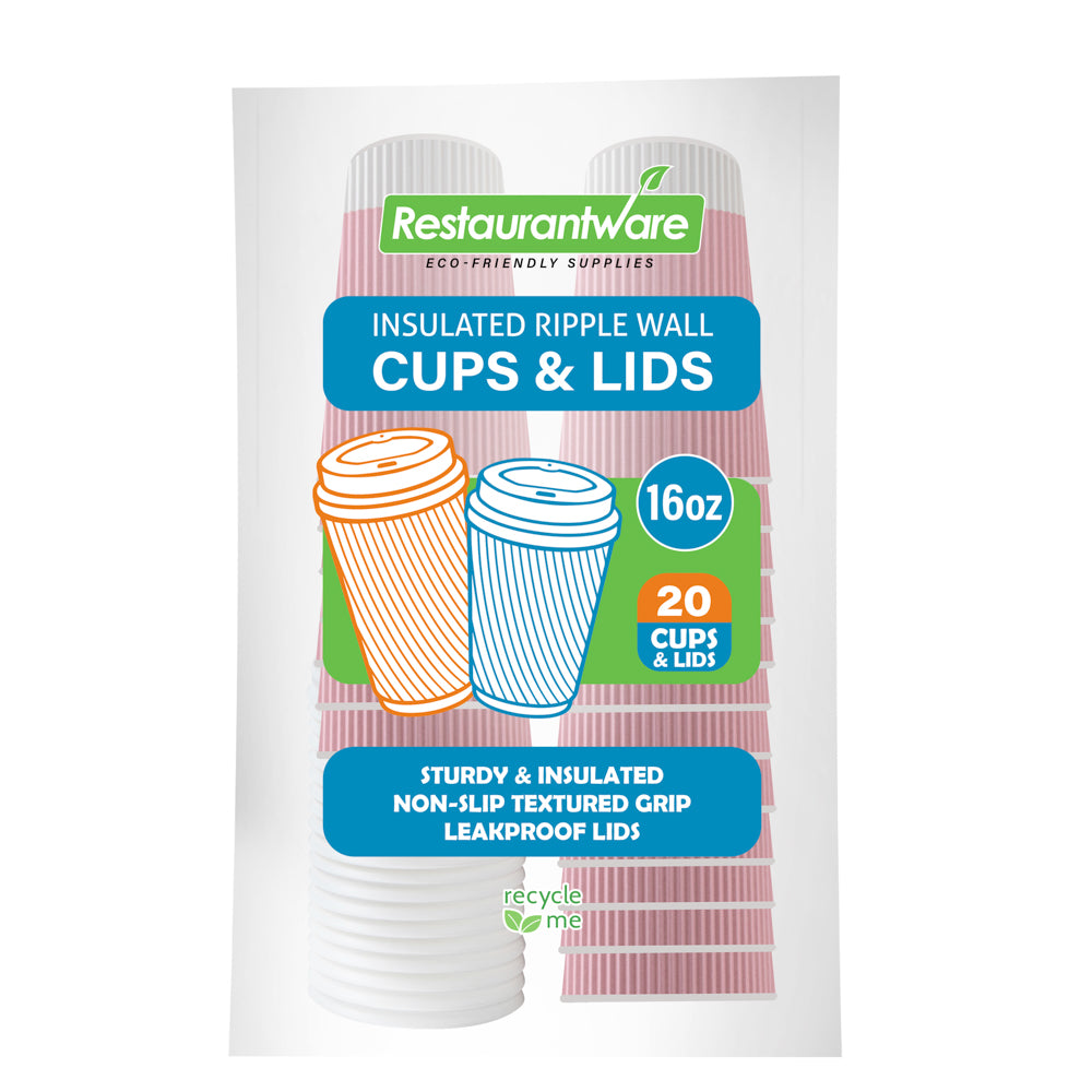 Ensure reliable drink service with the Restpresso Pink Disposable Coffee Cups With Lids. These 16-ounce ripple wall coffee cups are expertly designed with a rippled texture for a sturdy non-slip grip, eliminating the need for separate sleeves while keeping your hands cool. The included white lids create a tight-fitting seal to prevent spills, making them ideal for busy coffee shops or cafés. Crafted from durable paper, these insulated paper cups maintain beverage temperature, allowing customers to enjoy their hot drinks at the perfect warmth. Impressively, these cups also support eco-friendly operations by being fully recyclable, a crucial feature for sustainable coffee service. With their light pink finish, these cups not only provide excellent functionality but also add a touch of style to your beverage presentation. Upgrade your beverage service with these versatile coffee cups for a seamless customer experience. Each order includes 20 Restpresso Pink Disposable Coffee Cups with Lids.