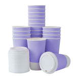 Enhance your beverage service with stylish, spill-free drinkware. Restpresso 16 oz Non-Slip Grip Disposable Coffee Cups feature ripple wall insulation that retains heat, eliminating the need for extra sleeves while maintaining beverage temperature. These coffee cups with lids include a secure seal to prevent spills during transport, ensuring a smooth takeaway experience. The recyclable design supports eco-friendly dining operations, making them ideal for sustainability-conscious cafés and catering events. Crafted from durable paper, these colorful purple cups add a vibrant touch to your beverage presentation and stand up to hot beverages without leaking. Each cup measures 3.6 inches in width and 6.2 inches in height, perfect for serving coffee, tea, or hot chocolate. Elevate your foodservice offerings and impress customers with reliable disposable coffee cups. Each order includes 20 Restpresso 16 oz Non-Slip Grip Disposable Coffee Cups.