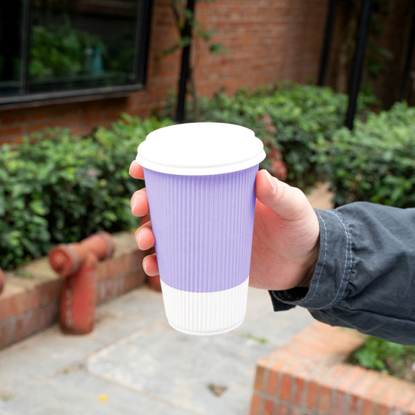 16 OZ LIGHT PURPLE PAPER RIPPLE WALL COFFEE CUP - WITH WHITE LID