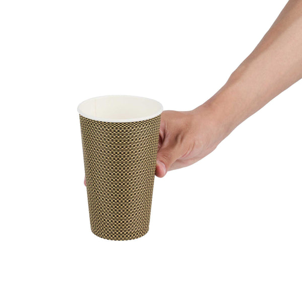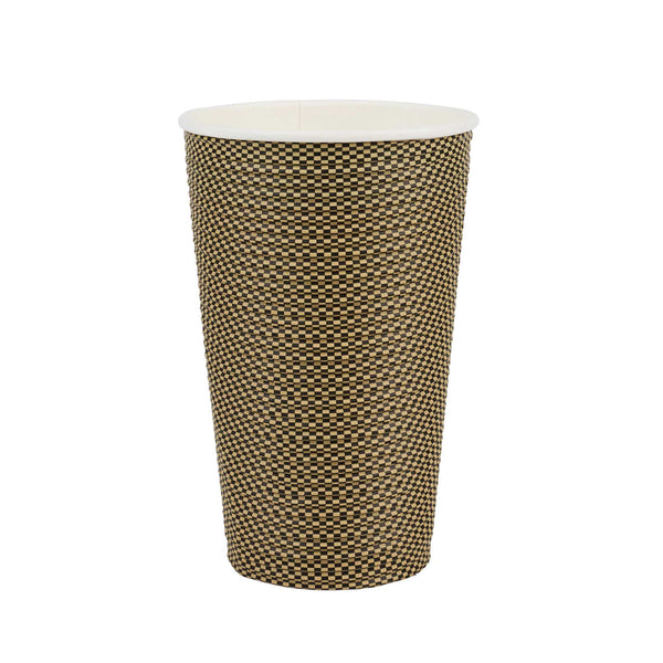 16 OZ MOCHA PIN CHECK PAPER COFFEE CUP - SPIRAL WALL