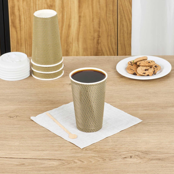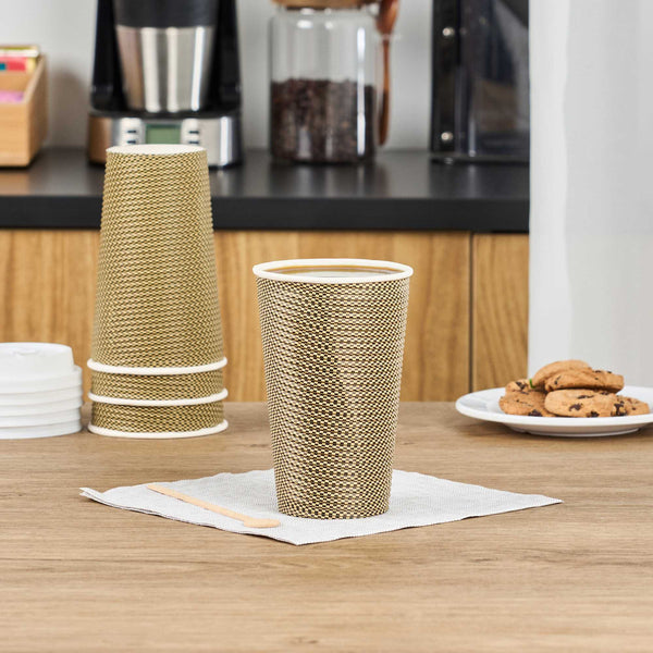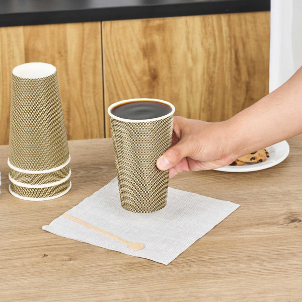 Thanks to the sturdy double-walled construction, these cups stay cool to the touch and will never burn your fingers. No costly sleeves or wasteful double cupping needed!