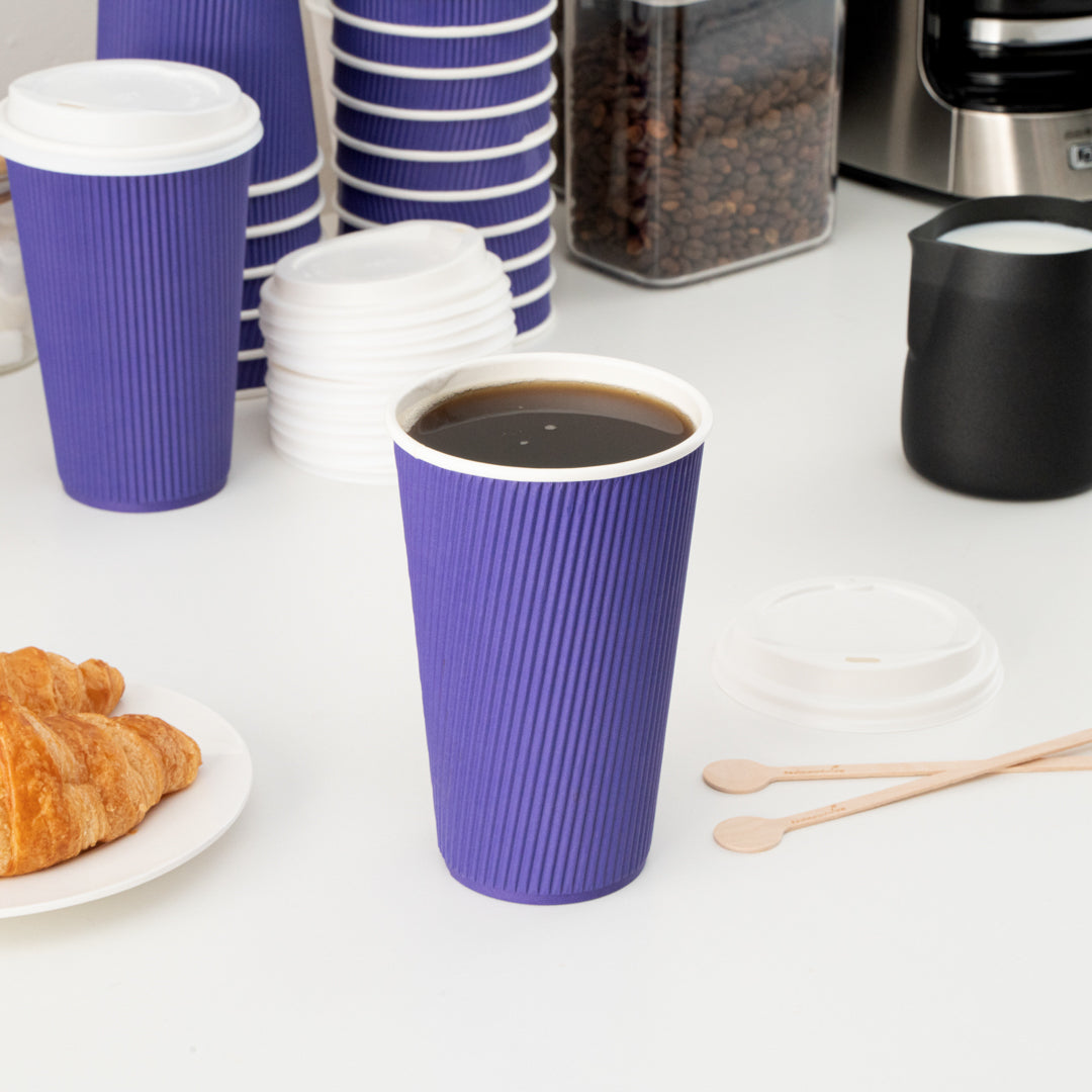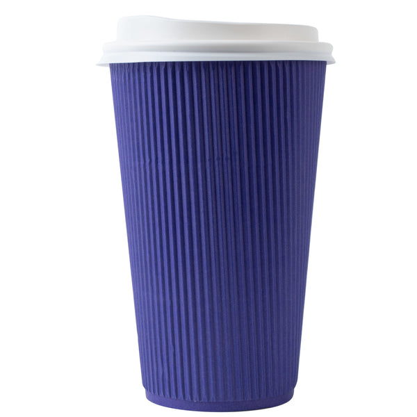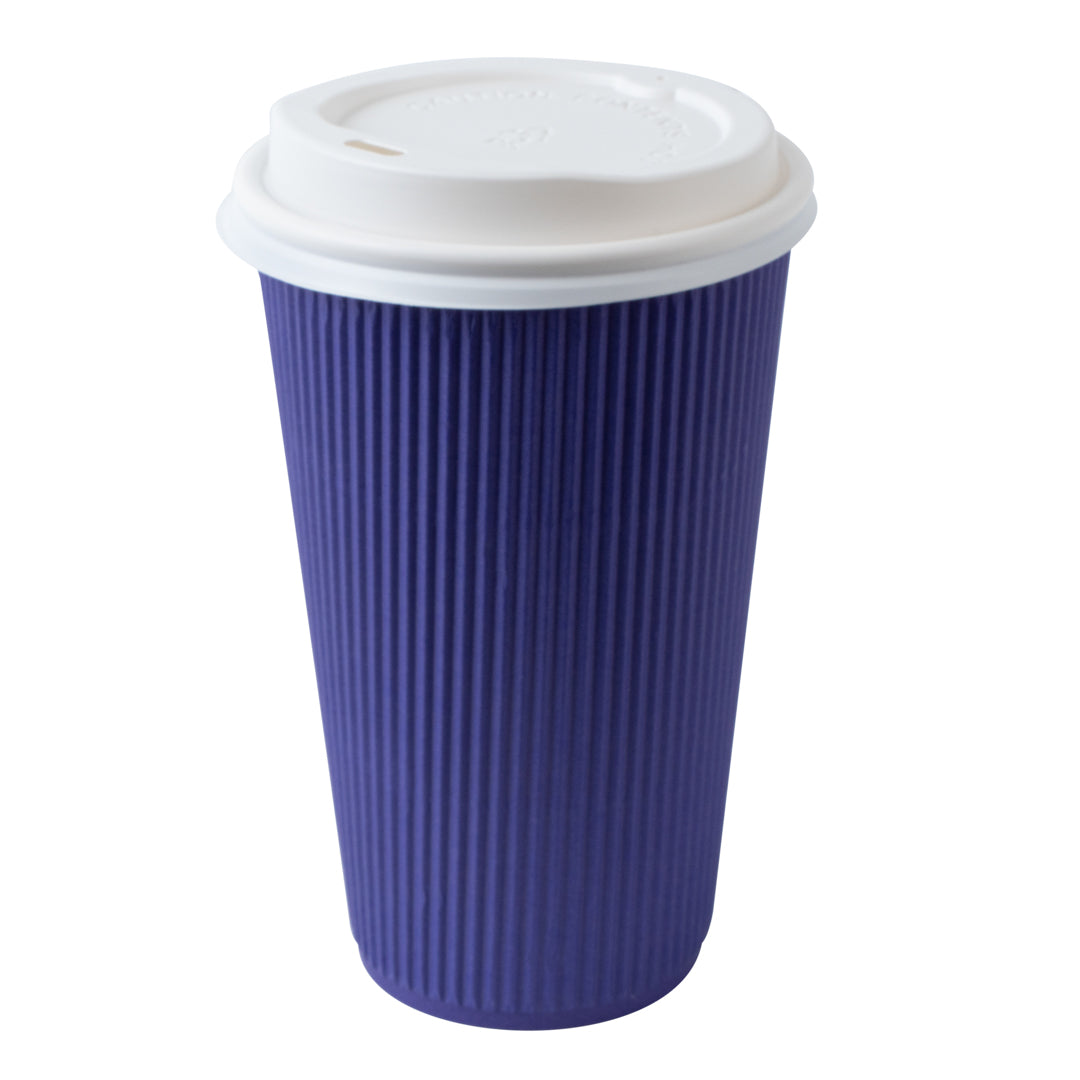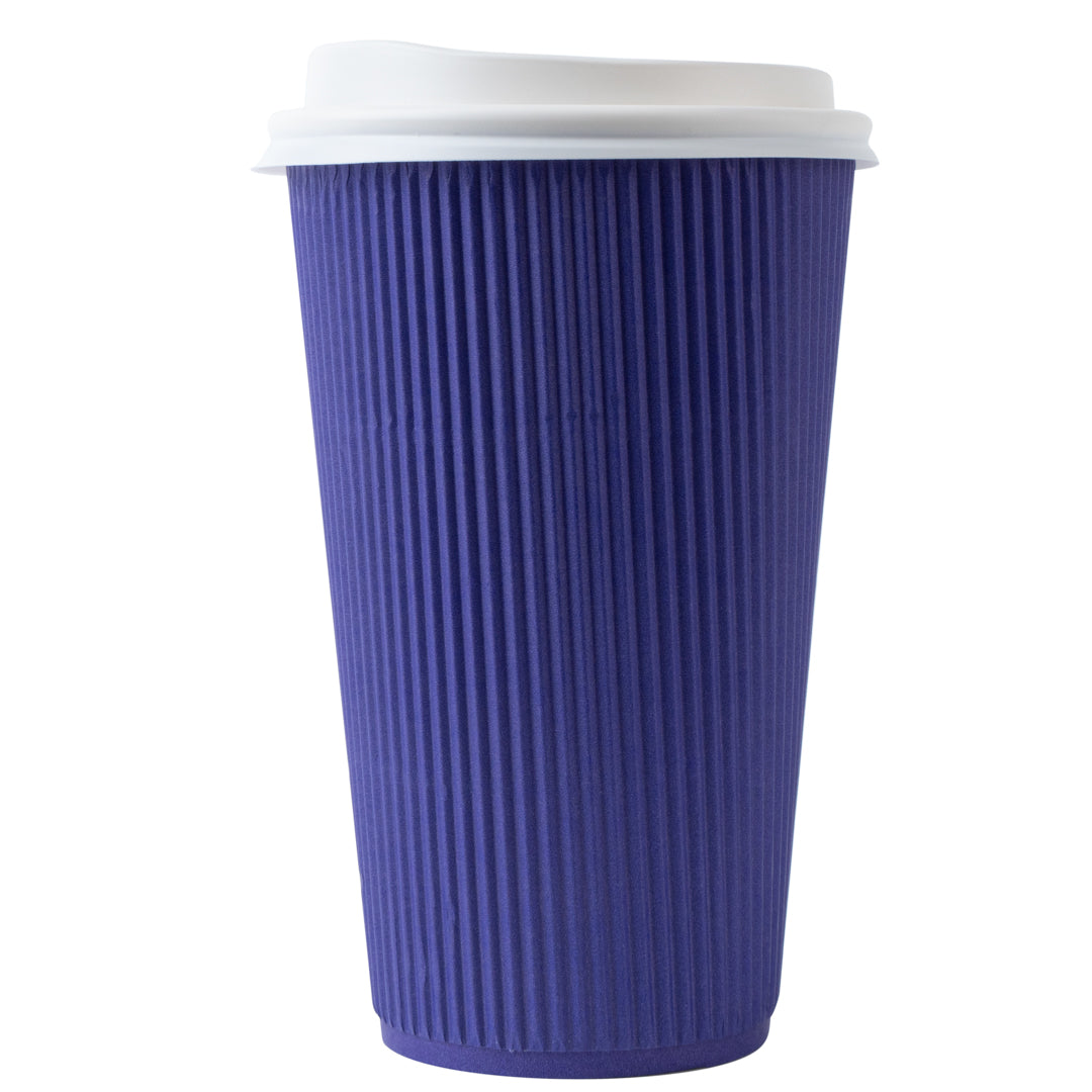16 OZ ROYAL PURPLE PAPER RIPPLE WALL COFFEE CUP - WITH WHITE LID