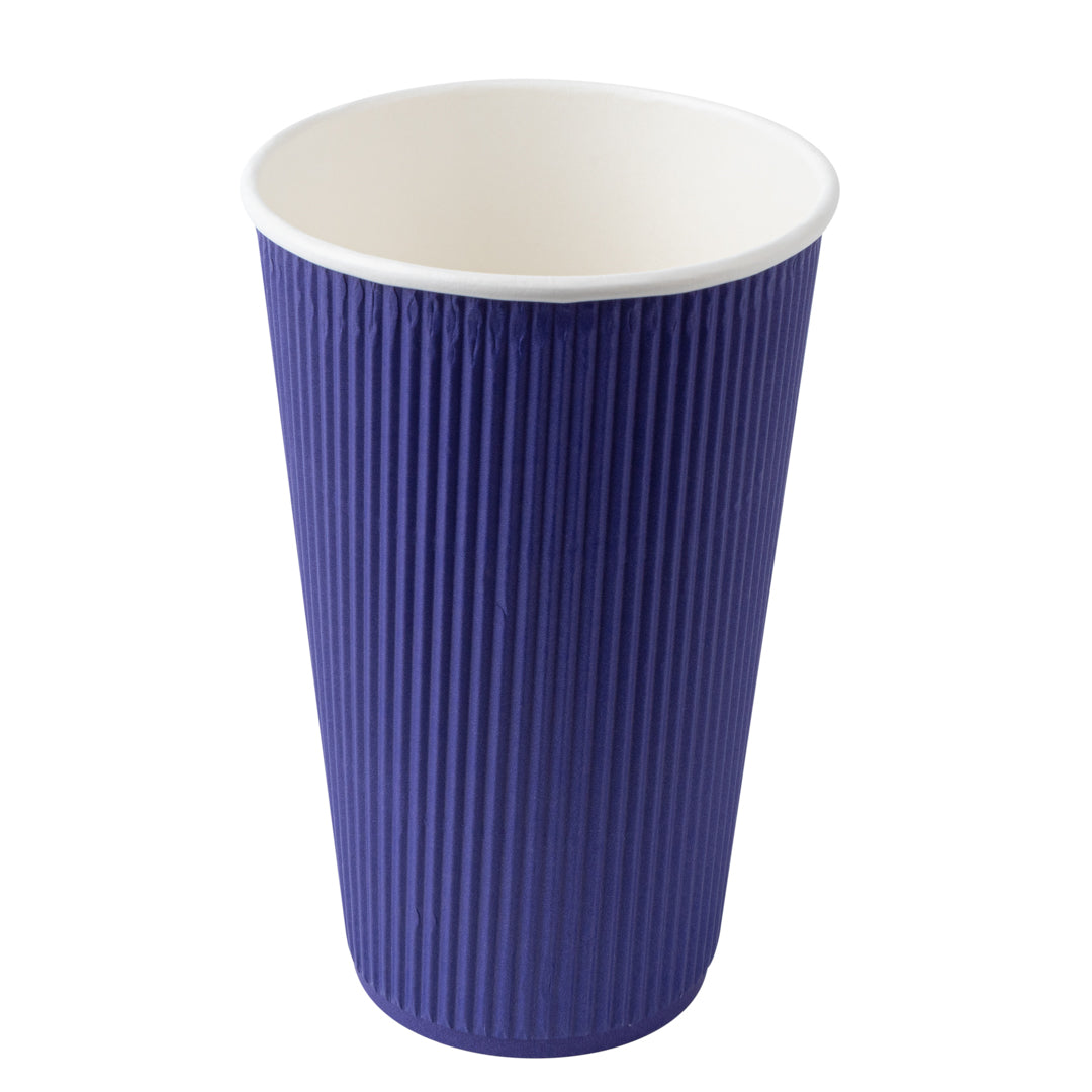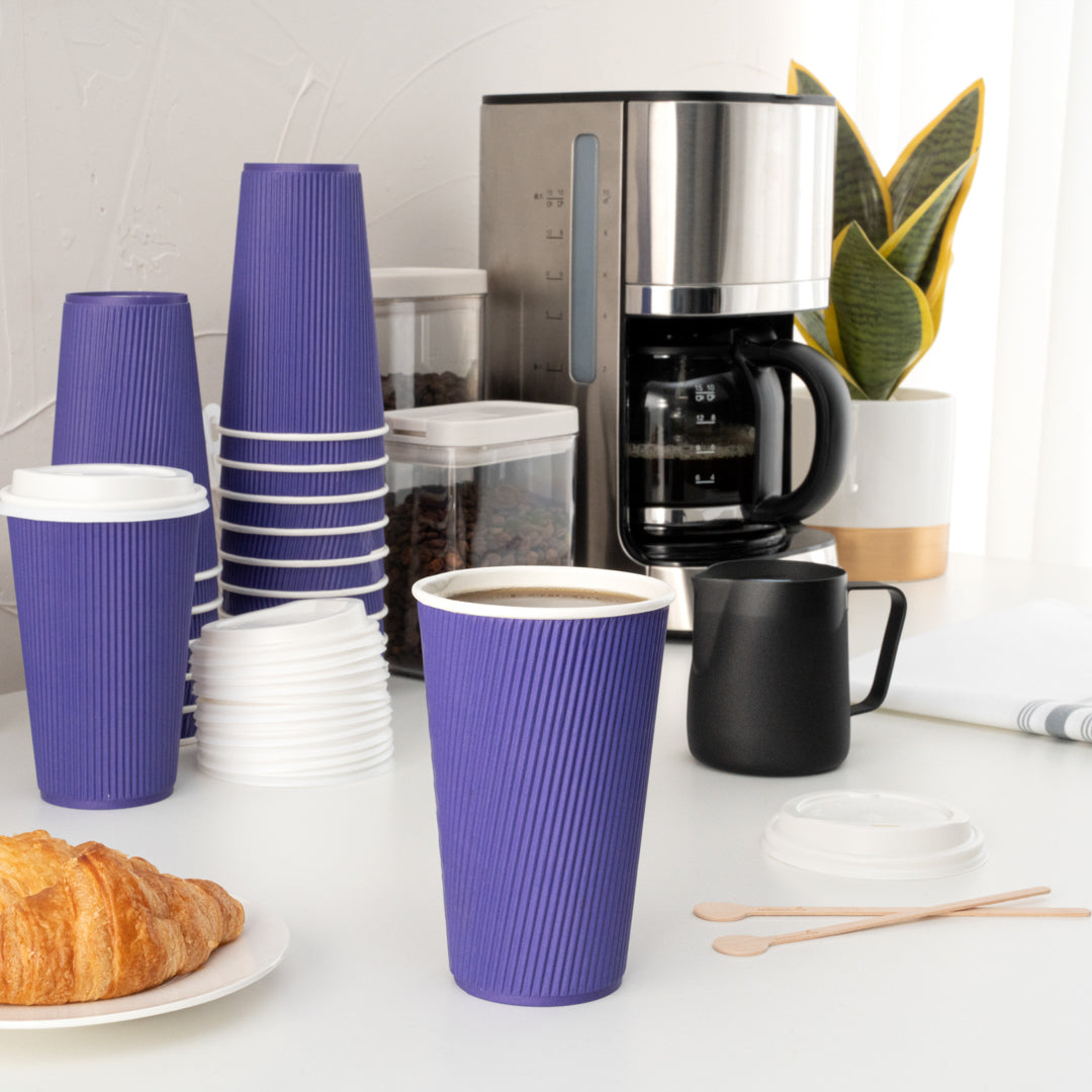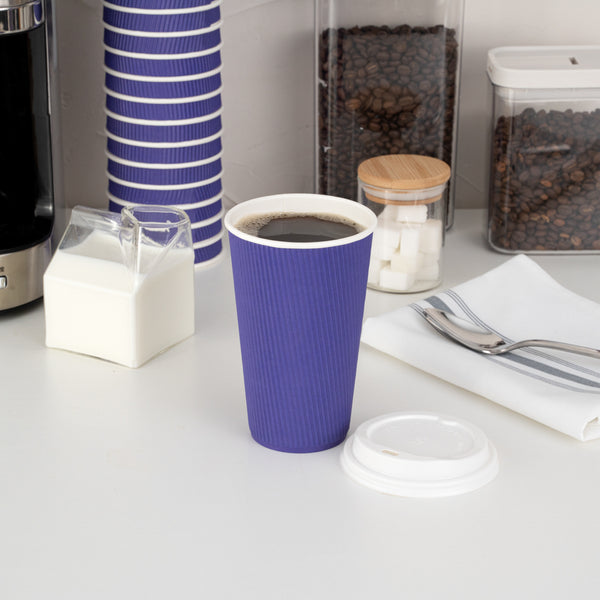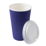 16 OZ ROYAL PURPLE PAPER RIPPLE WALL COFFEE CUP - WITH WHITE LID