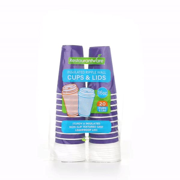 Ensure superior beverage presentation with vibrant, disposable coffee cups. Restpresso Insulated Grip 16 oz Disposable Coffee Cups feature a purple ripple wall design that retains heat, enhancing customer satisfaction by keeping drinks hot and hands cool. These insulated ripple cups include secure white lids that prevent spills, making them perfect for busy coffee shops and cafés. Crafted from durable paper, these paper cups with lids maintain their shape and integrity, ensuring smooth service. With a recyclable construction, they promote sustainable practices, aligning with eco-friendly initiatives. Measuring 3.6 inches in length, these cups are designed for efficient handling and storage. Elevate your hot beverage service with these reliable, stylish cups. Each order includes 20 Restpresso Insulated Grip 16 oz Disposable Coffee Cups.