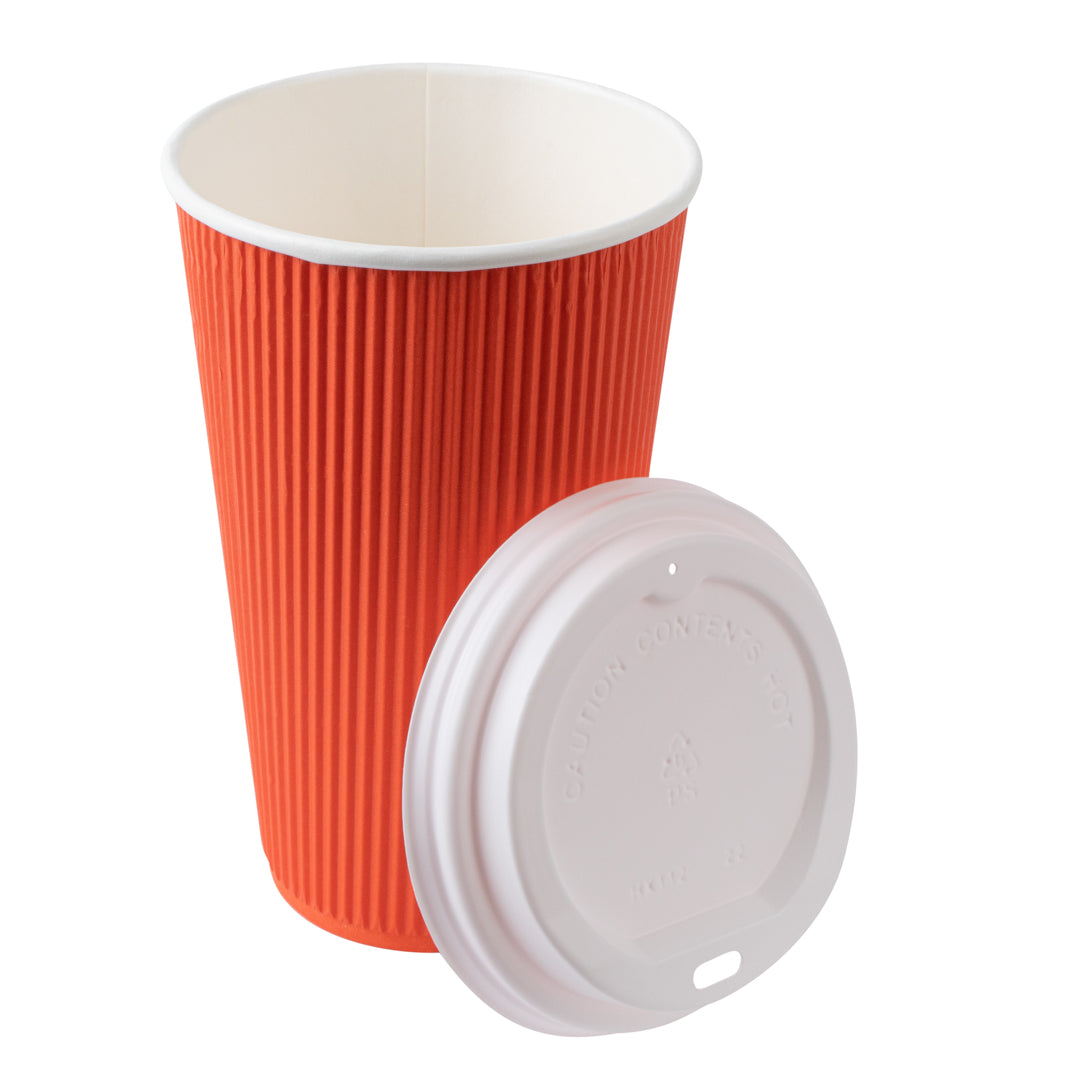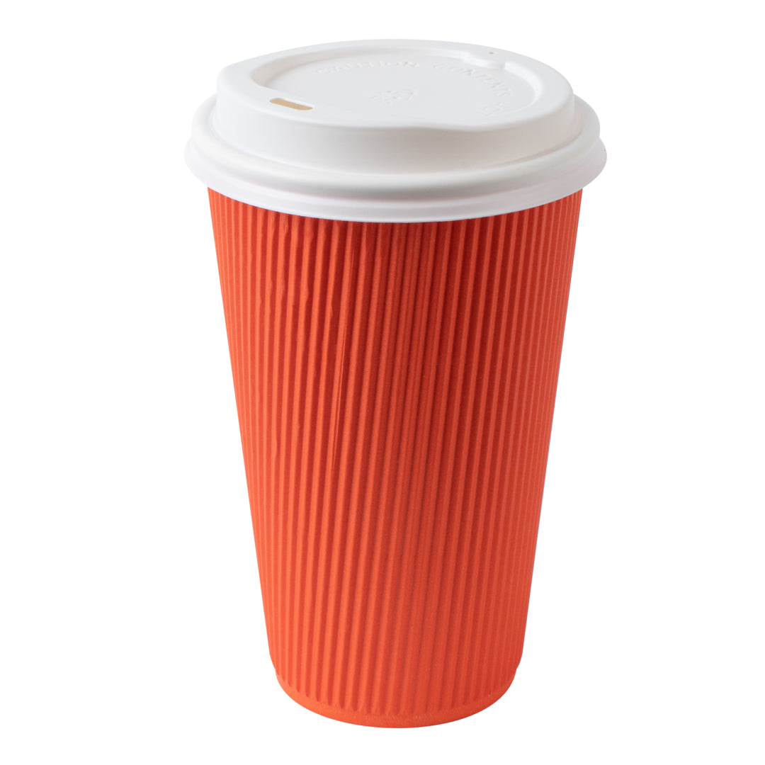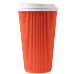 16 OZ TANGERINE ORANGE PAPER RIPPLE WALL COFFEE CUP - WITH WHITE LID
