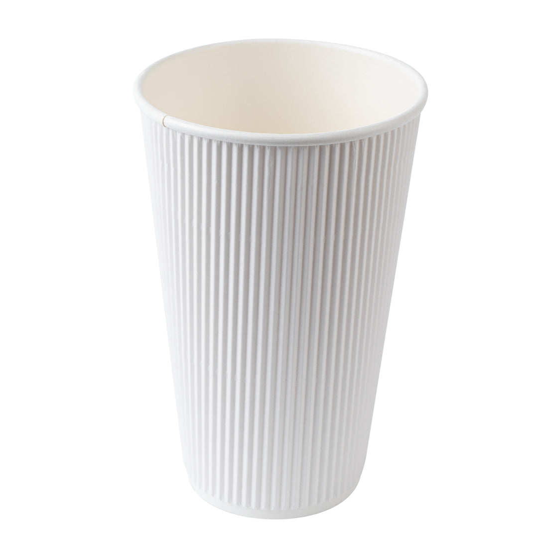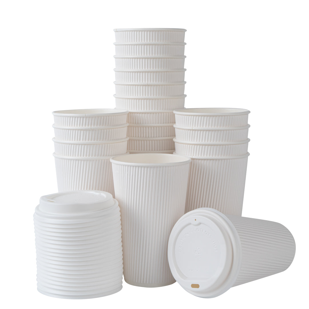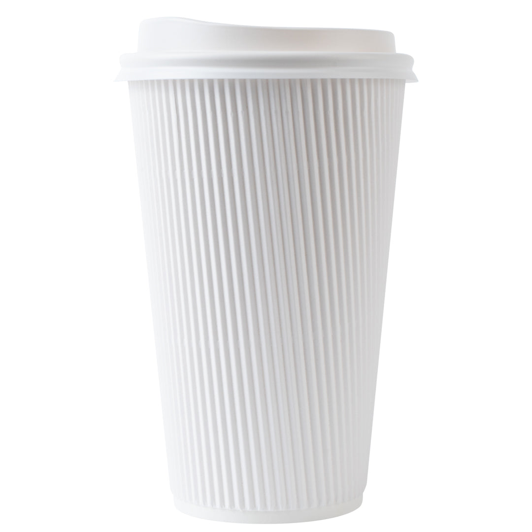 16 OZ WHITE PAPER RIPPLE WALL COFFEE CUP - WITH WHITE LID