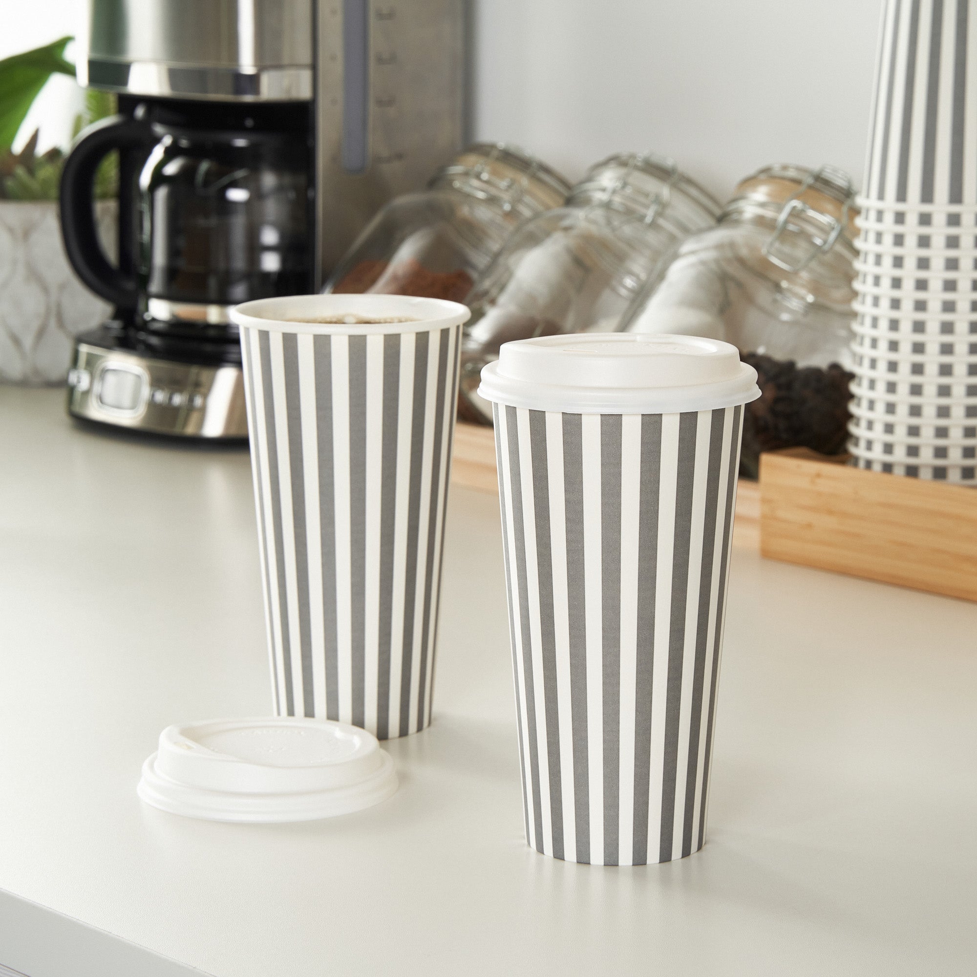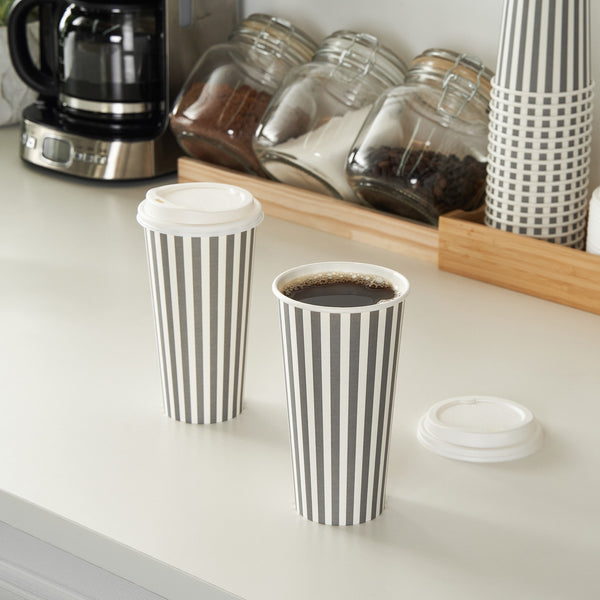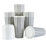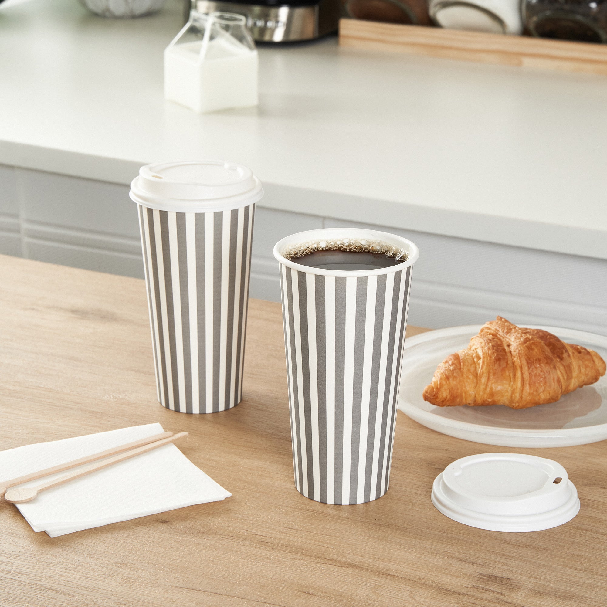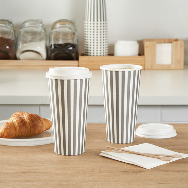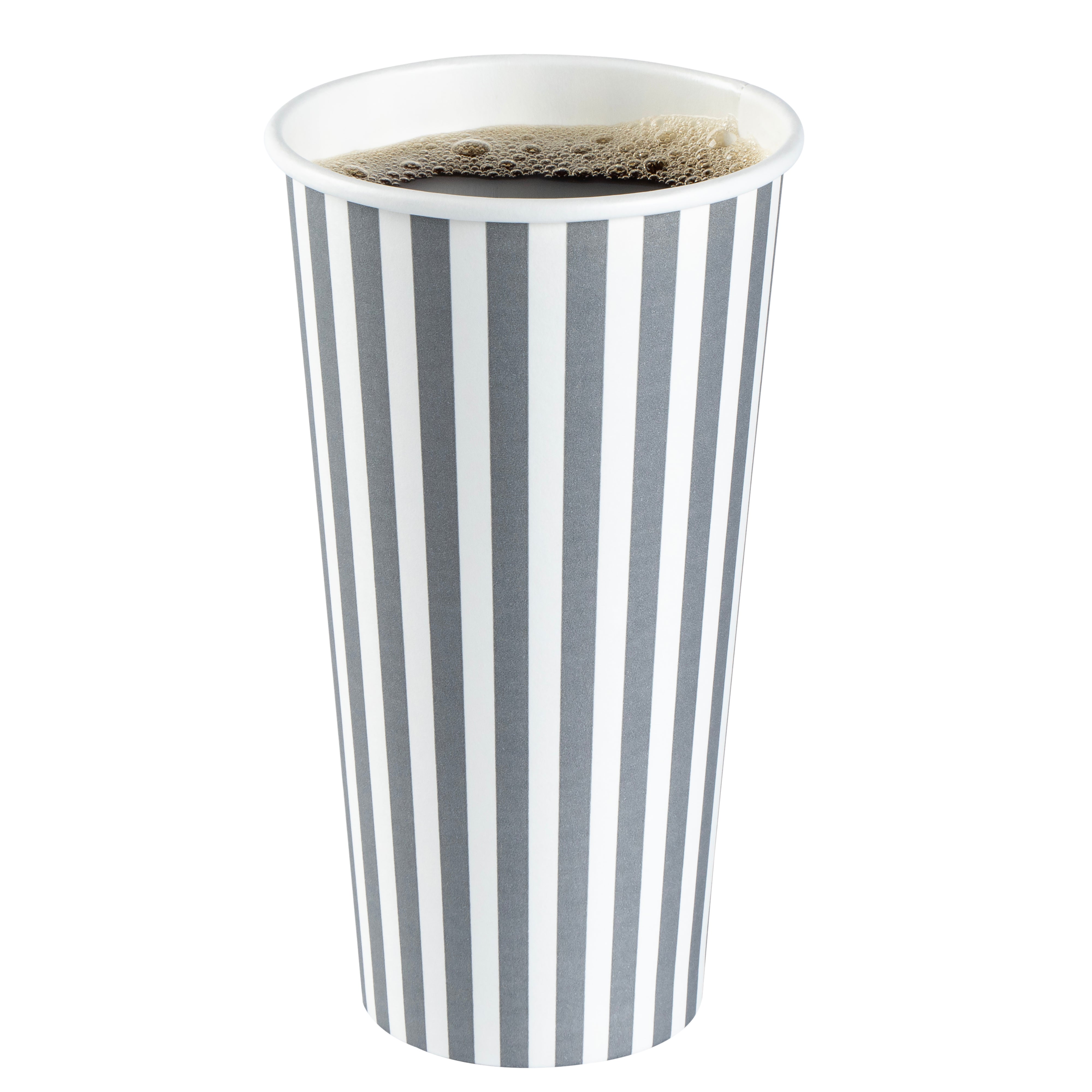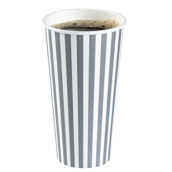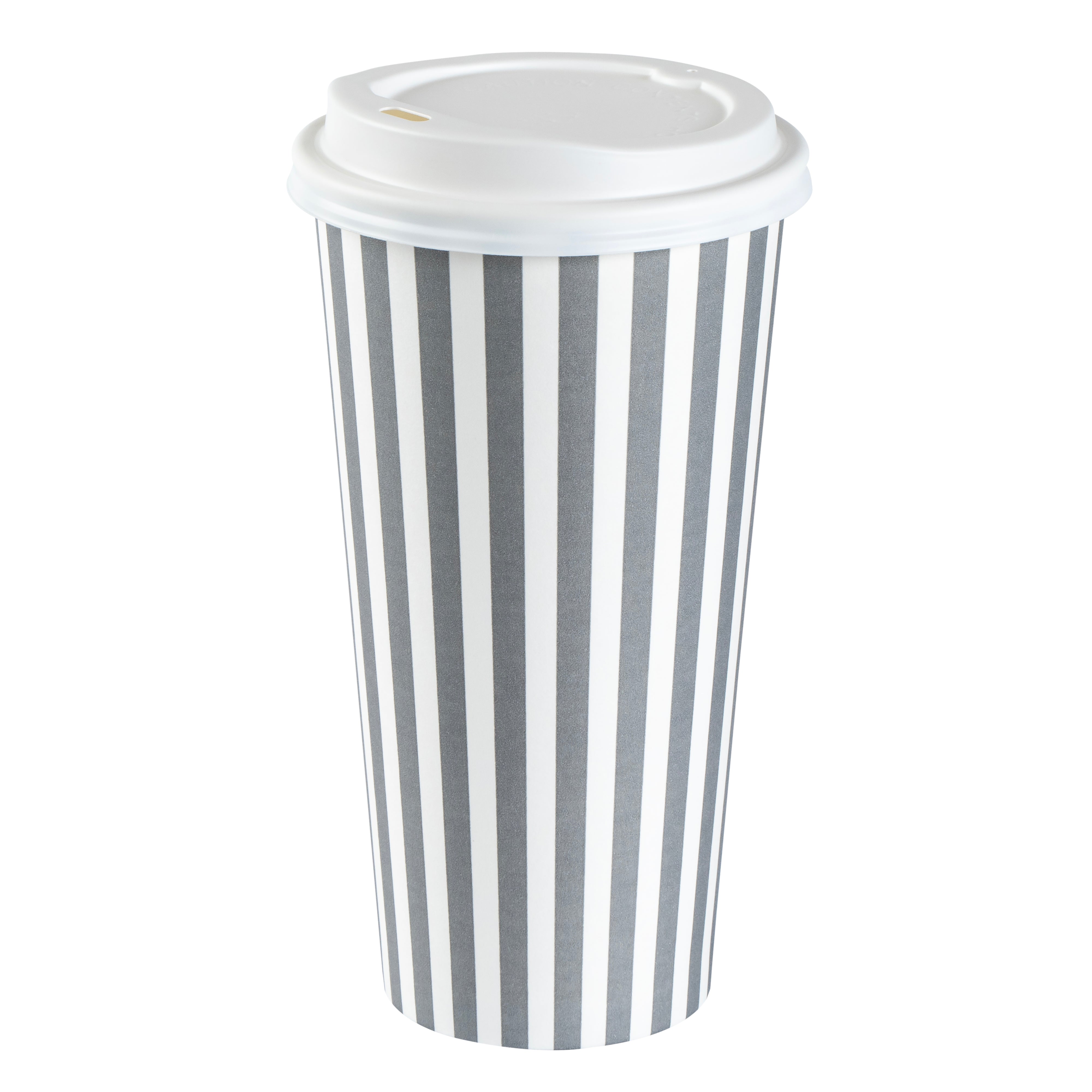 20 OZ GRAY AND WHITE STRIPE PAPER SINGLE WALL COFFEE CUP - WHITE LID