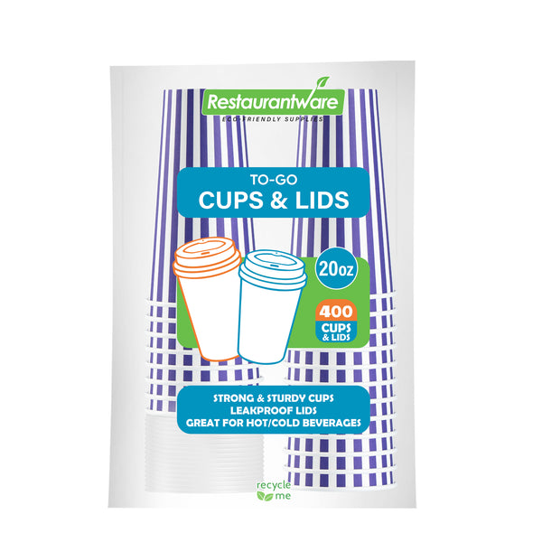 Begin your day with our Restpresso 20-ounce Purple and White Stripe Paper Single Wall Coffee Cups. Crafted with a greaseproof PE liner, these paper coffee cups reduce unwanted leaks and spills, ensuring a clean and convenient drinking experience. These disposable hot cups are expertly designed to hold hot and cold beverages, making them a versatile choice for any refreshment. Celebrate the uniqueness of these single wall coffee cups, featuring a vibrant purple and white stripe finish that adds a pop of color to your morning routine. These disposable coffee cups come with a white lid for sipping on the go. The stackable design of these recyclable hot tea cups saves valuable storage space in your establishment. Enjoy the secure and comfortable grip provided by the rolled rim of these beverage cups, enhancing your customers' drinking experience. The leak-resistant seam of these drinking cups is designed to ensure that your beverage remains inside your cup, not on your clothes. Coordinate these elegant coffee cups with our assortment of sleeves, ensuring a sophisticated and burn-free coffee session. With a generous capacity of 20 ounces, these hot cups are perfect for that large morning coffee or tea. Measuring 3.5 inches in diameter by 6.5 inches in height, these striped coffee cups the ideal size for your daily caffeine fix. Sold in a 400 count box. Sleeves are available and sold separately.