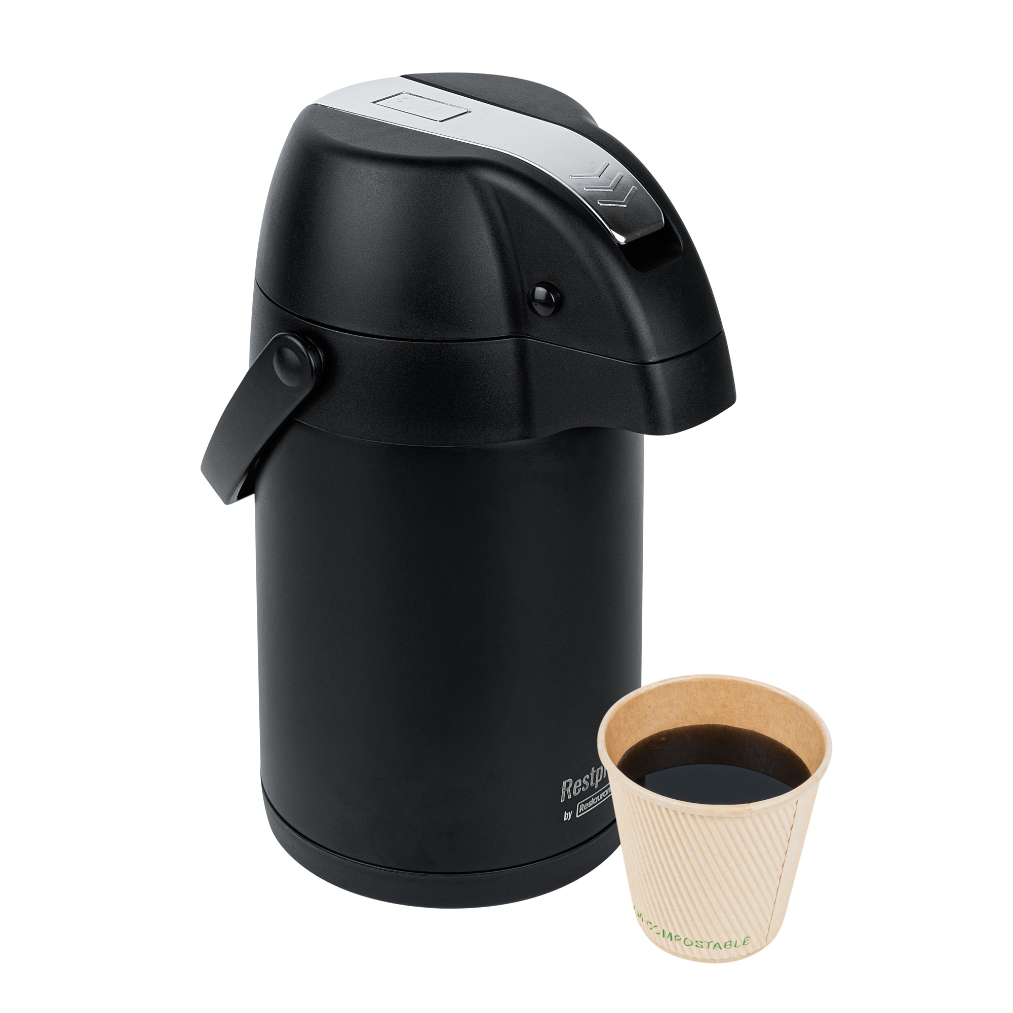 Ensure optimal beverage service with our vacuum insulated airpot. The Restpresso Vacuum Insulation Thermal Coffee Carafe combines advanced vacuum insulation technology with a sleek black exterior, maintaining hot coffee temperatures for up to 12 hours to enhance hospitality experiences. With its substantial 3-liter capacity, this thermal coffee carafe minimizes the need for frequent refills, making it perfect for high-traffic events or bustling breakfast buffets. Its user-friendly pump mechanism ensures spill-free dispensing, boosting efficiency in fast-paced environments, while the premium stainless steel construction guarantees durability, even with heavy use. The convenient swivel base allows 360-degree rotation, providing easy access from any angle and enhancing user experience in self-serve stations. Elevate your beverage service with this insulated beverage dispenser, designed to keep your coffee station running smoothly. Each order includes 1 Restpresso Vacuum Insulation Thermal Coffee Carafe.