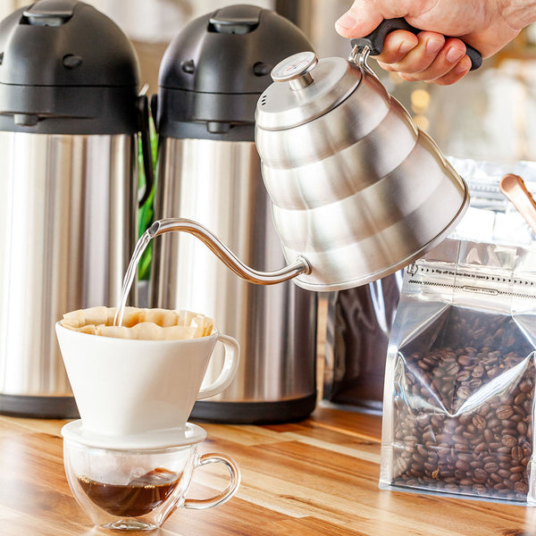 Our kettles are designed with a thermometer hole or thermometer lid to check temperatures and make sure your water is not too hot or cold. Your coffee will be at the perfect temperature every time.