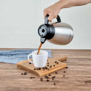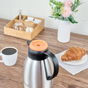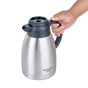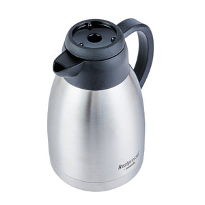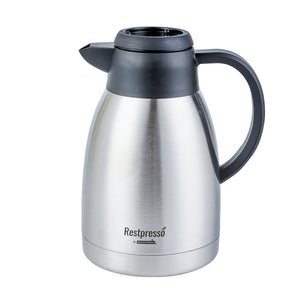 Maintain perfect serving temperatures with the Restpresso Insulated Coffee Carafe. Featuring double-wall insulation, this insulated coffee carafe ensures your beverages stay hot or cold for extended periods, enhancing the quality of your service. With a generous 51-ounce capacity, this thermal coffee server efficiently serves multiple guests without constant refills, making it an ideal choice for bustling breakfast buffets or catering events. The inclusion of regular and decaf brew-thru lids allows for easy coffee identification, streamlining your beverage service and boosting operational efficiency. Crafted from robust stainless steel, this stainless steel thermal carafe is designed for durability and can withstand daily use in demanding foodservice environments. Its ergonomic handle provides a comfortable grip, ensuring safe and spill-free pouring of hot drinks, which is crucial in busy settings. Elevate your coffee service with this indispensable addition to your beverage station. Each order includes 1 Restpresso Insulated Coffee Carafe.