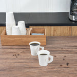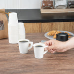 Ensure safe handling of hot beverages with ergonomic design. The Restpresso Paper Coffee Cup with Handle offers a greaseproof coating that prevents the cup from becoming soggy, making it ideal for serving hot drinks. This 7oz paper coffee cup features an ergonomic handle, providing comfort and control for coffee shop operators and event caterers who need to manage drinks efficiently. With a rolled rim, this disposable coffee cup with handle helps prevent collapse, ensuring reliable use during busy service times. Its white color and 2.8-inch by 3-inch dimensions offer a clean, professional appearance suitable for various settings. Elevate your beverage service with this hot beverage cup, providing a sustainable and practical solution. Each order includes 1000 Restpresso Paper Coffee Cups with Handle.