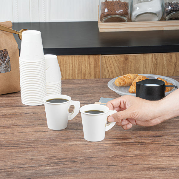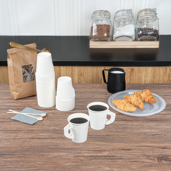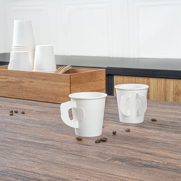 7 OZ WHITE PAPER COFFEE CUP - WITH HANDLE, SINGLE WALL