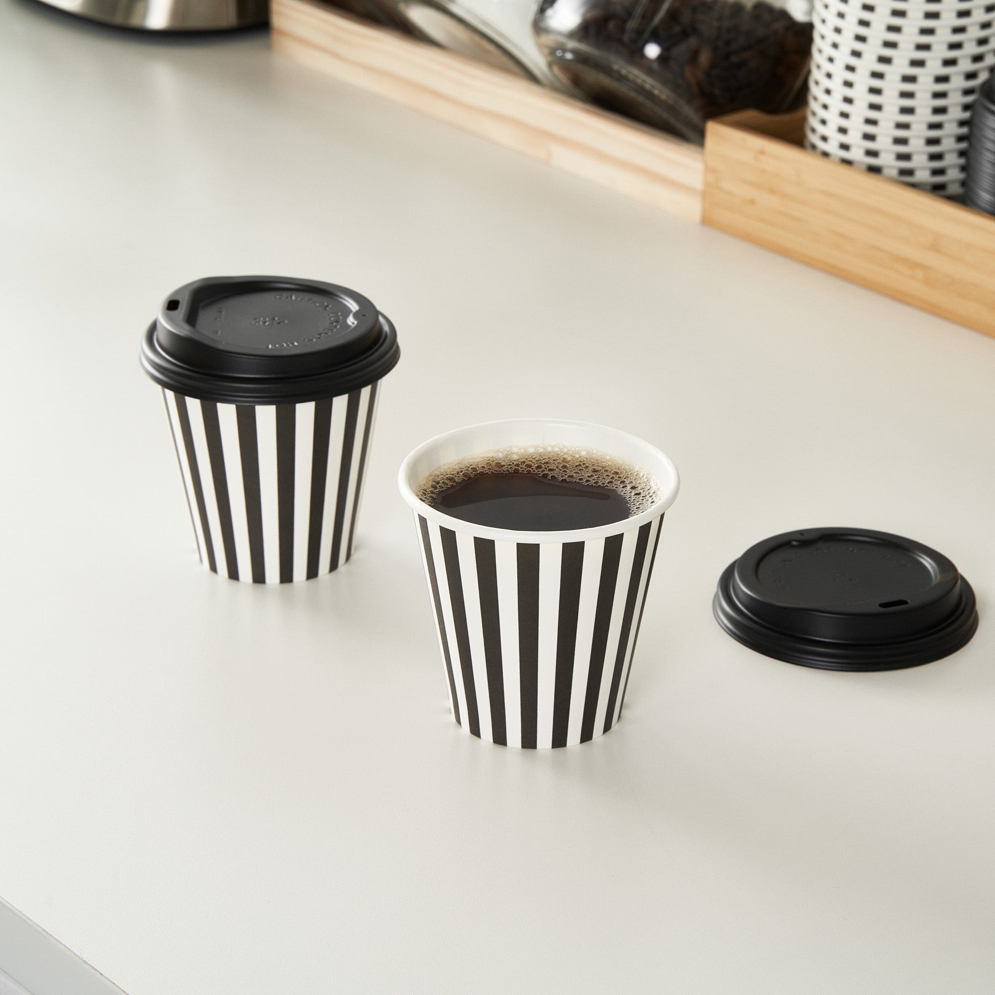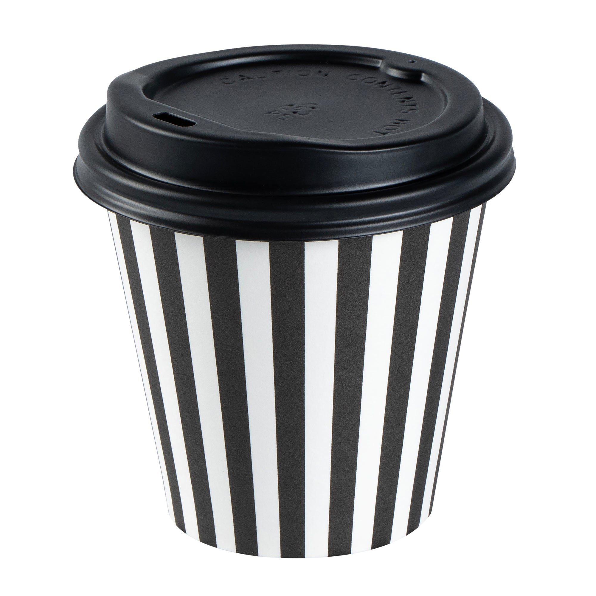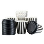 8 OZ BLACK AND WHITE PAPER SINGLE WALL COFFEE CUP - WITH LID