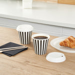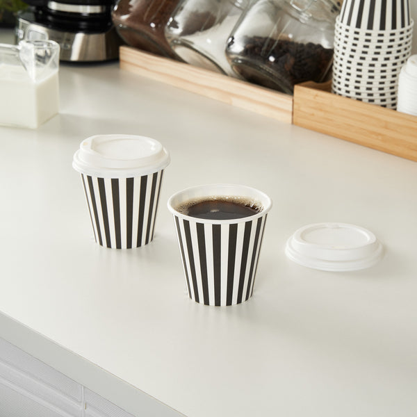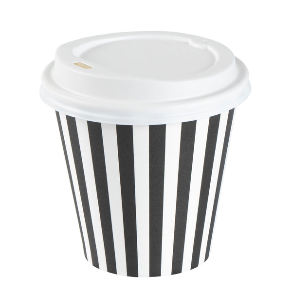 8 OZ BLACK AND WHITE PAPER SINGLE WALL COFFEE CUP - WITH LID