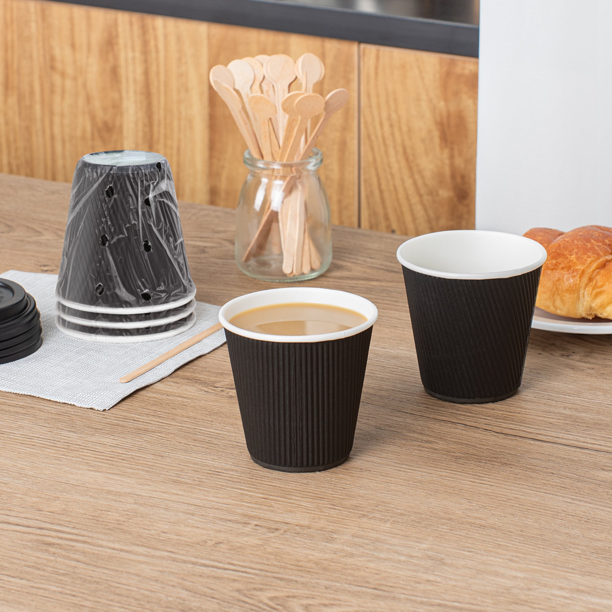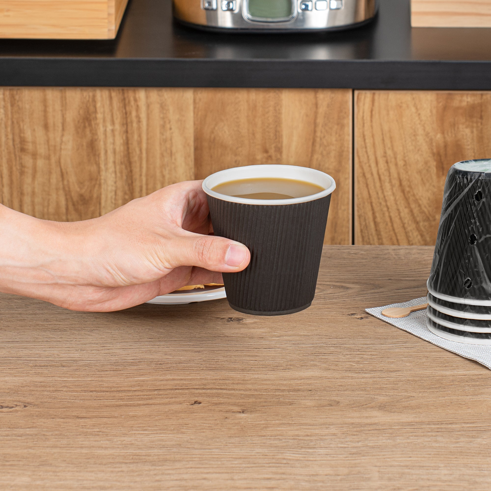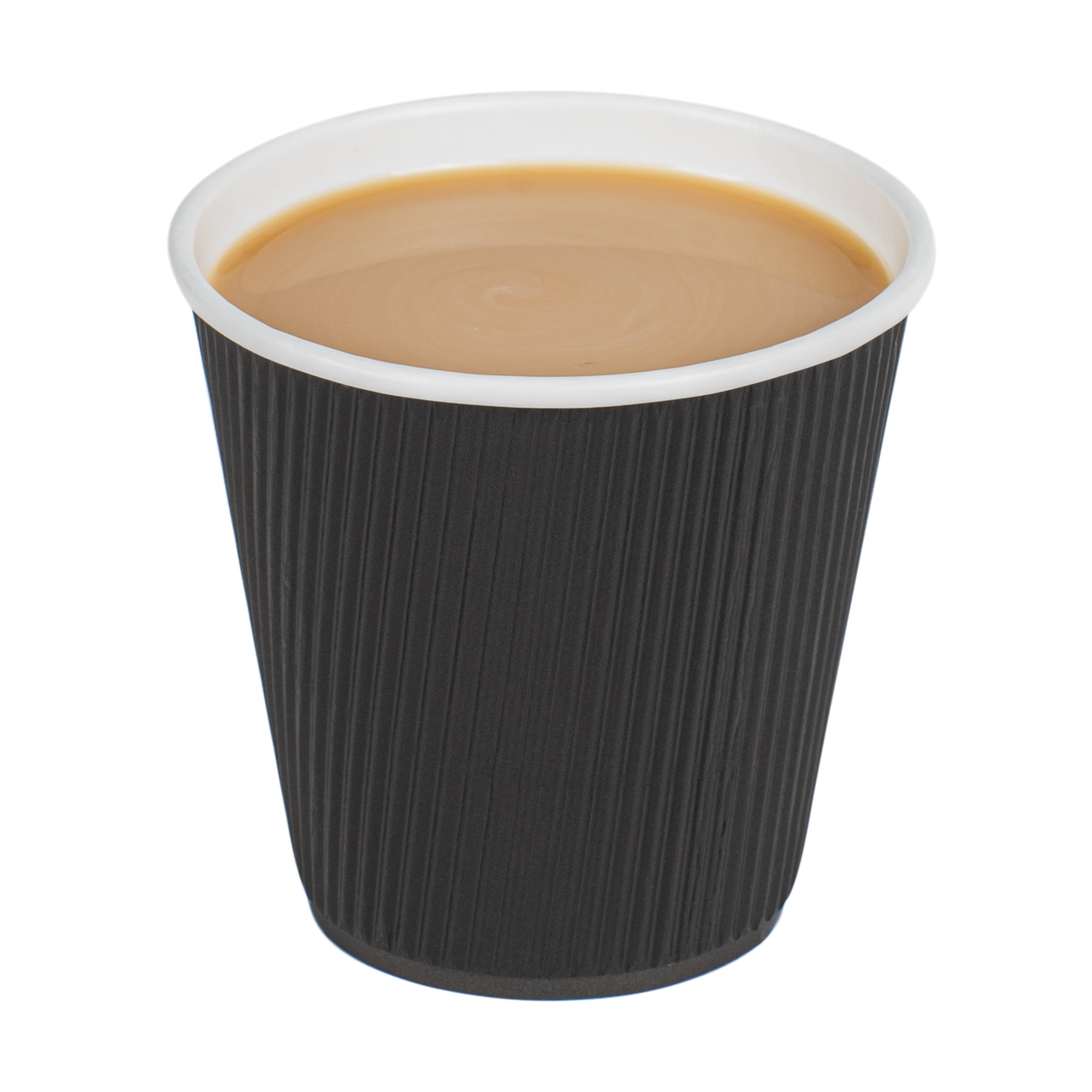 8 OZ BLACK PAPER HOT CUP - INDIVIDUALLY WRAPPED, RIPPLE WALL