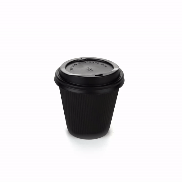 8 OZ BLACK PAPER RIPPLE WALL COFFEE CUP - WITH BLACK LID