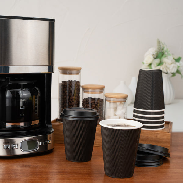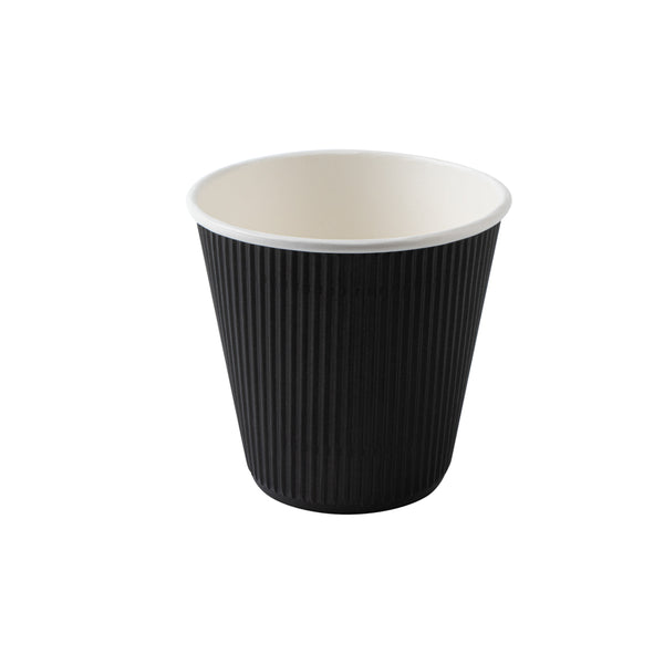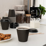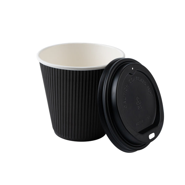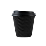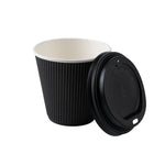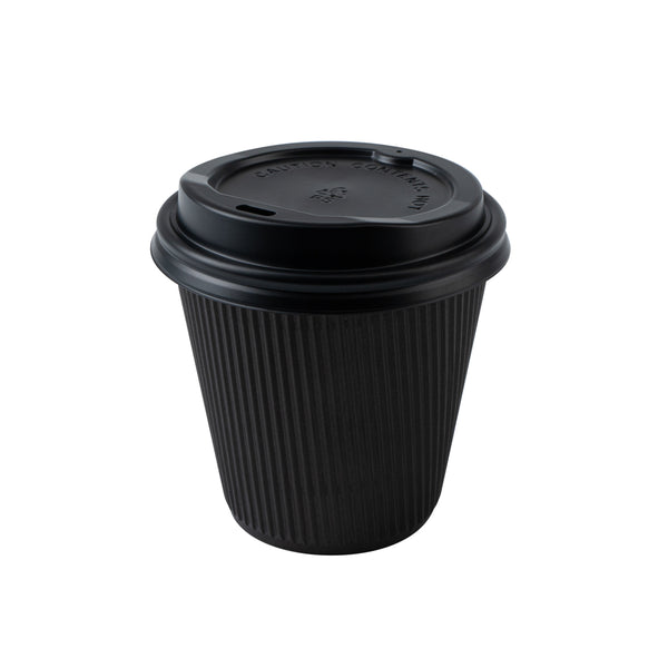 8 OZ BLACK PAPER RIPPLE WALL COFFEE CUP - WITH BLACK LID